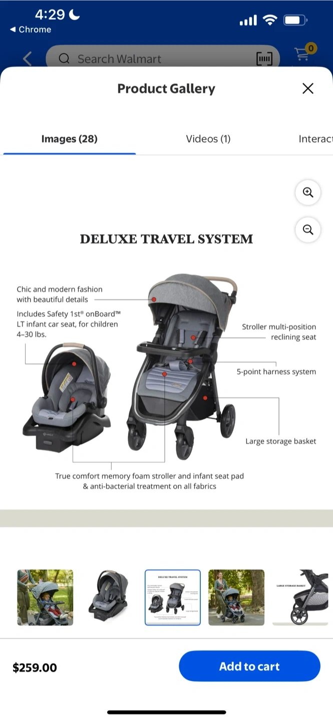 Selling a Safety 1st Deluxe Travel System! This chic and modern travel system includes the Safety 1st onBoard 35 LT infant car seat, suitable for children 4-30 lbs. It features a stroller with a multi-position reclining seat, a 5-point harness system, and a large storage basket. The stroller and infant seat pad are made with true comfort memory foam and anti-bacterial treatment on all fabrics. Originally priced at $259