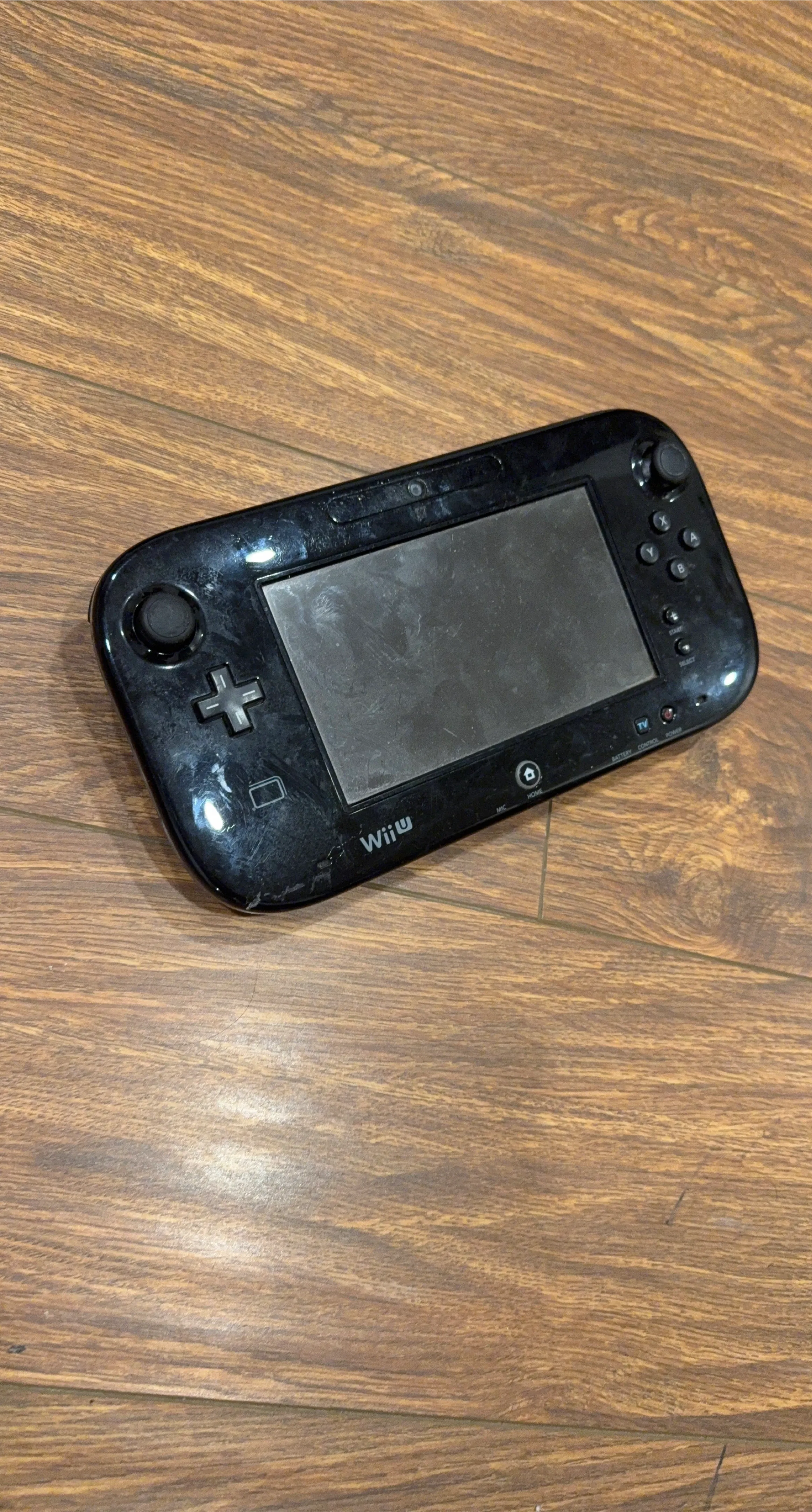 Selling a used black Nintendo Wii U gamepad. It has some visible scratches and wear from use, but it's still fully functional and ready for a new owner!