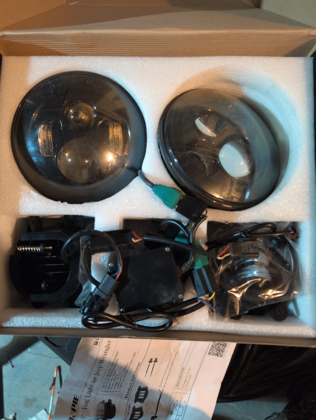 Selling a set of Sunpie 7" LED Headlights and 4" Fog Lights designed for a Jeep Wrangler.