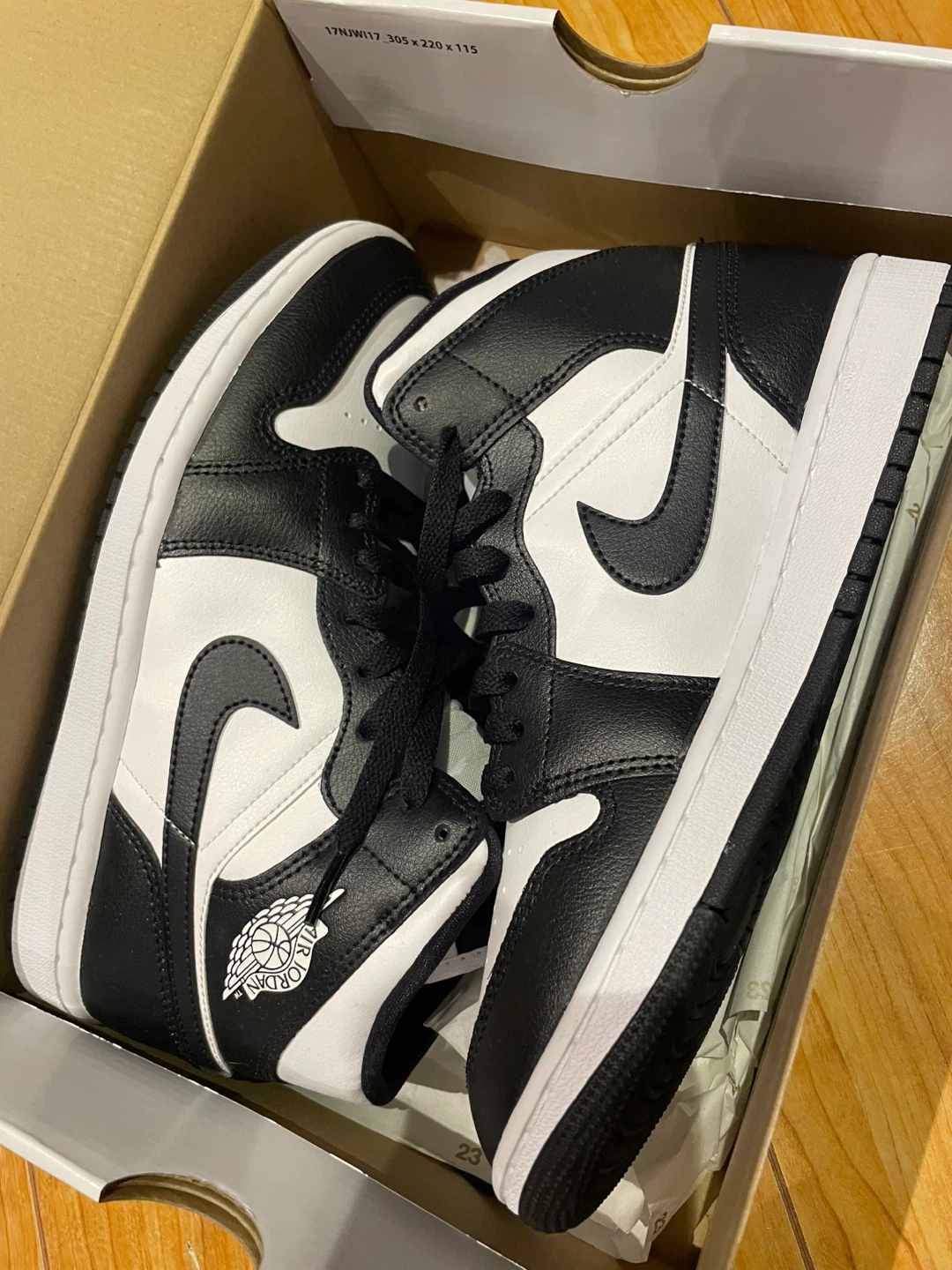 Selling a pair of Nike Air Jordan 1 Mid sneakers in black and white! These are a women's size 8.5 US. They come with the original box!