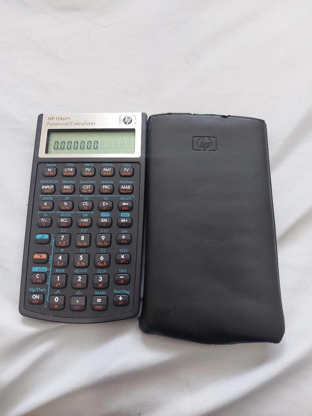 Selling a HP 10bII+ financial calculator. It comes with its protective case. This calculator is great for financial calculations. It's in good condition and ready to use!