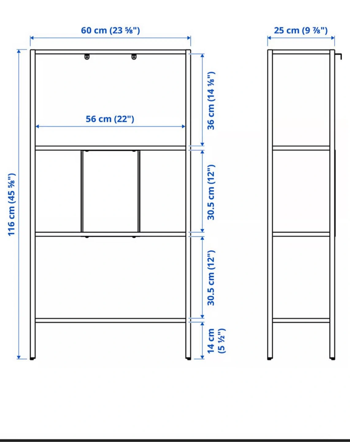 - Dimensions: 60x25x116 cm (23 5/8x9 7/8x45 5/8 ")