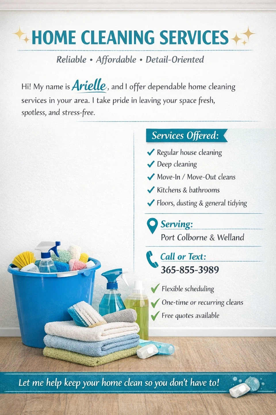 Buy & SellCleaning serviceCleaning service$18Home cleaning service Dee cleaning and maintenance services available starting at 20$ hrWHERE TO MEETCheck LocationView MapSELLERAriellePort Colborne50 reviews0 chats·0 favorites·4 viewsSEND CHAT TO SELLERHi Arielle! I’m interested in your listing.Hi Arielle! I’m interested in your listing.Get the Karrot app to chatSign In to chat
