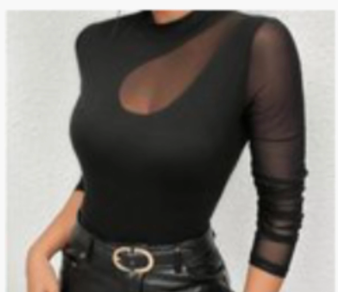 This is a black mesh long sleeve top. It has a unique design with a cutout detail. Perfect for adding a stylish touch to your outfit! brought the wrong side and over expiry day to return. Size Large.