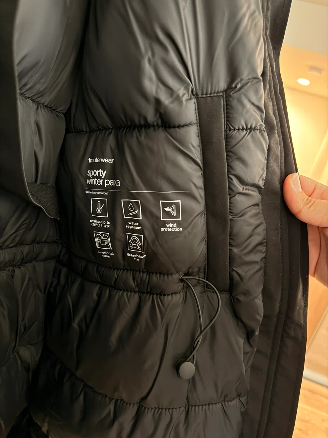 Stay warm this winter with this sporty black parka from Zara! It's water-resistant and provides wind protection, perfect for those chilly Canadian days. The jacket features a detachable fur trim and a functional wrap design to keep you cozy and stylish.