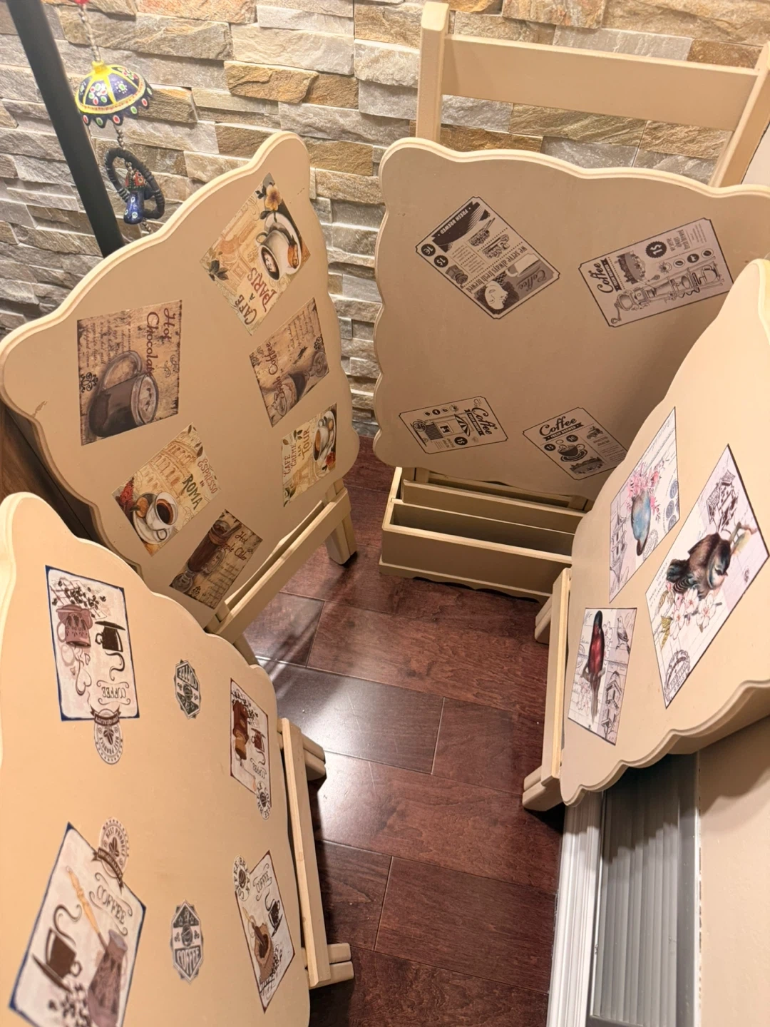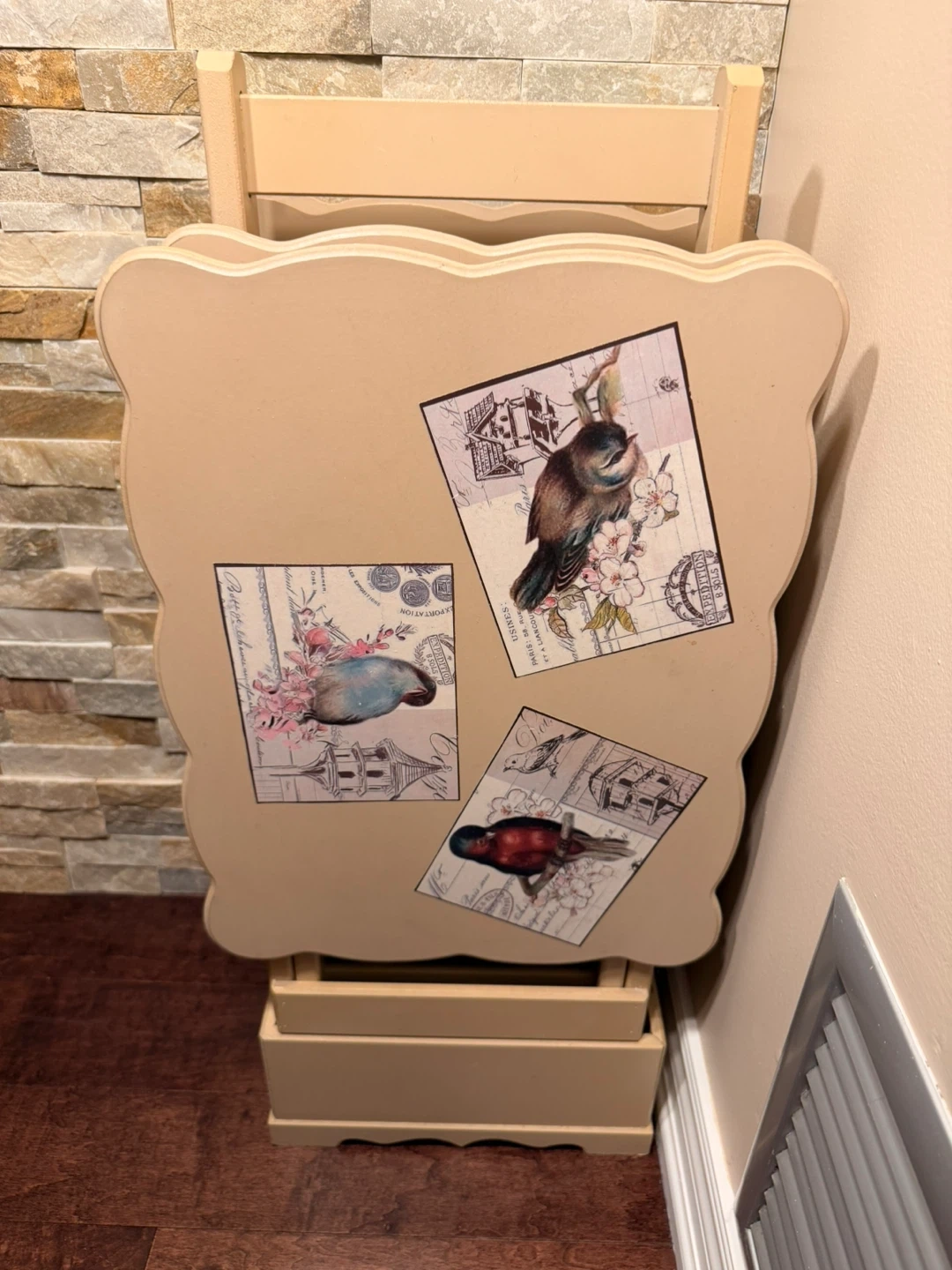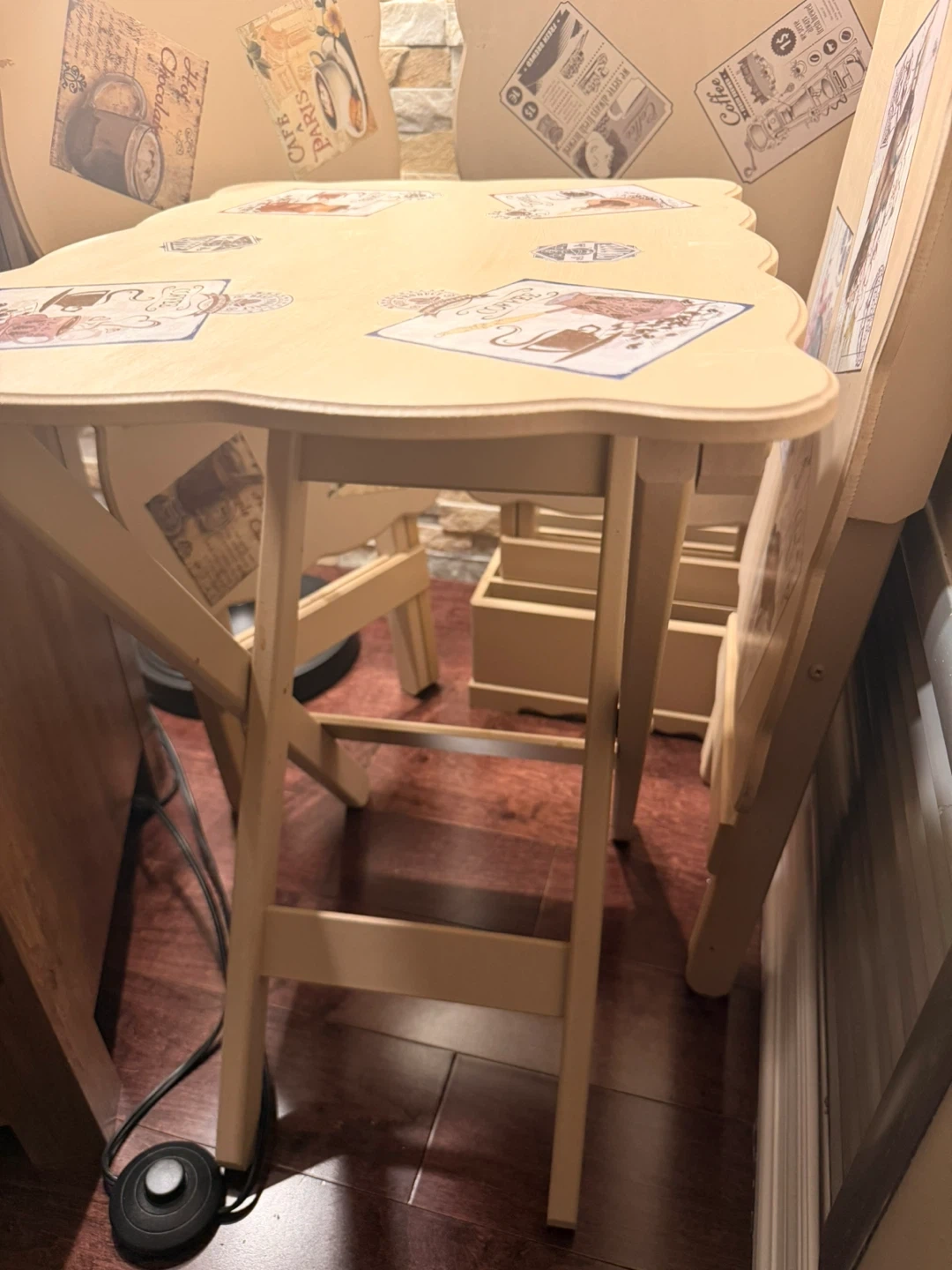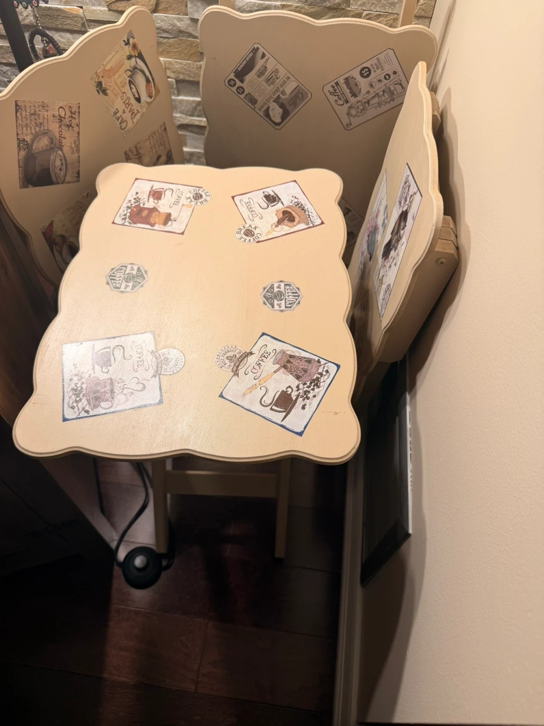 Selling a set of four folding tables. They are in good condition and feature decorative images on the surface of each table. Perfect for extra table space when needed!