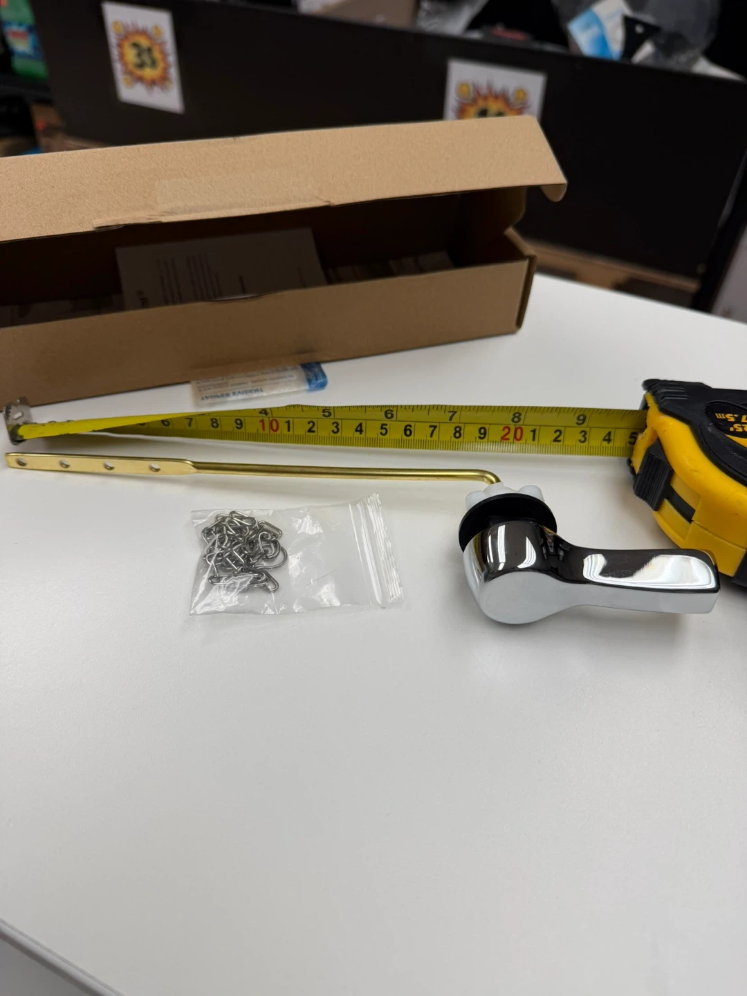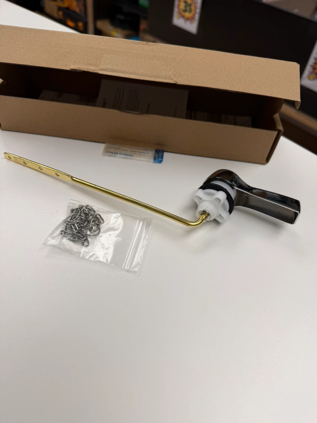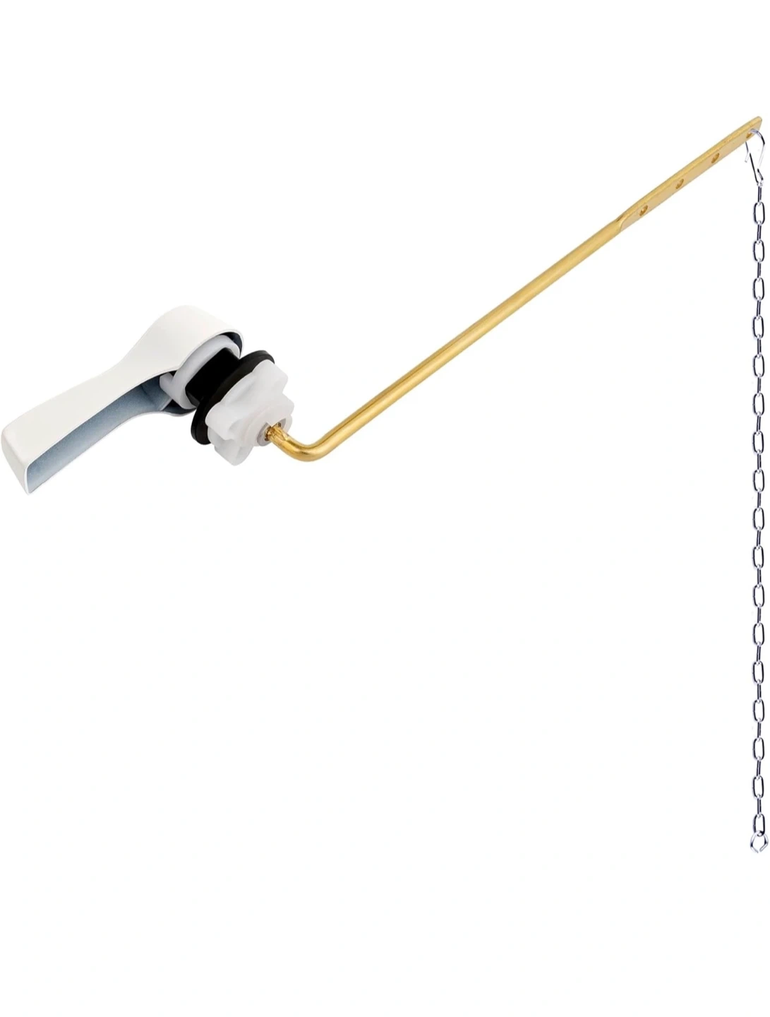 Universal Front Mount Toilet Handle Tank Flush Lever Replacement Handle with Stainless Steel Flapper Chains for Most Front Mount Toilets - White Finish Toilet Handle
