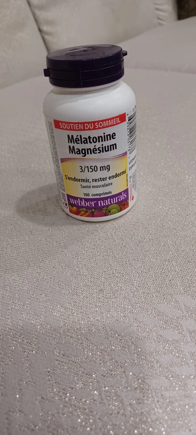 Selling a bottle of Webber Naturals Melatonin Magnesium 3/150 mg. These are great for sleep support and muscle relaxation. Each bottle contains 100 tablets. Expiry Date: 2027
