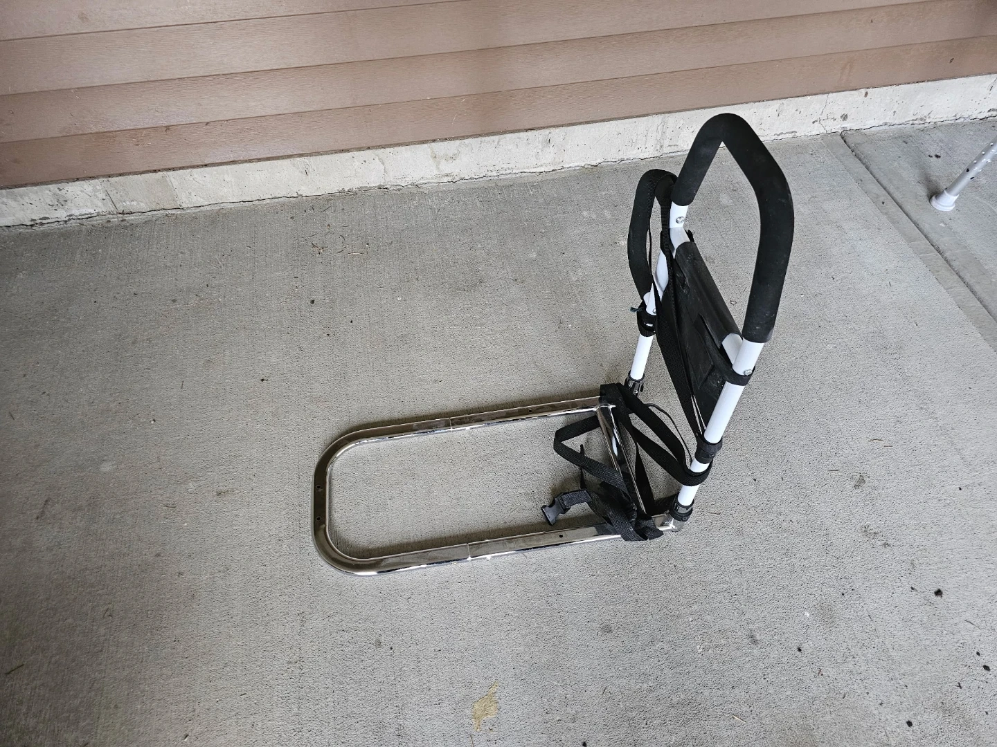 Selling a bed assist rail. It's designed to help individuals get in and out of bed more easily. The rail is in good condition and provides added safety and support