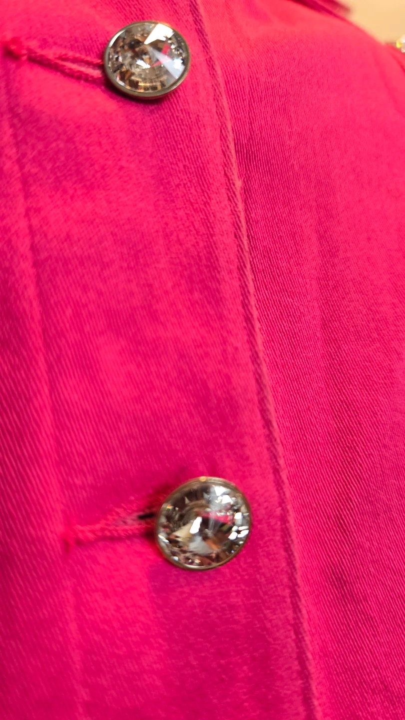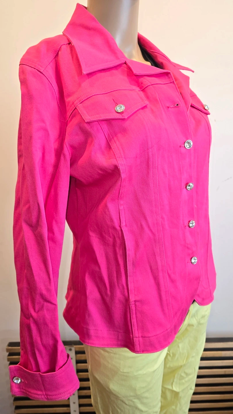 Selling a Christine Alexander jacket in a vibrant pink colour! The jacket is a size M stretxh denim and features stylish details like crystal buttons and a classic fitted design. Perfect for adding a pop of colour to your wardrobe!