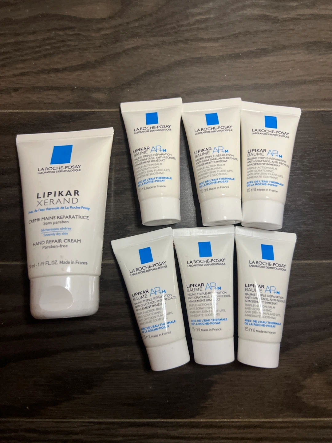 Selling a collection of La Roche-Posay hand creams! You'll get one 50ml Lipikar Xerand Hand Repair Cream and six 15ml Lipikar Baume AP+M balms. Perfect for keeping your hands moisturized and soothed, especially during the dry winter months