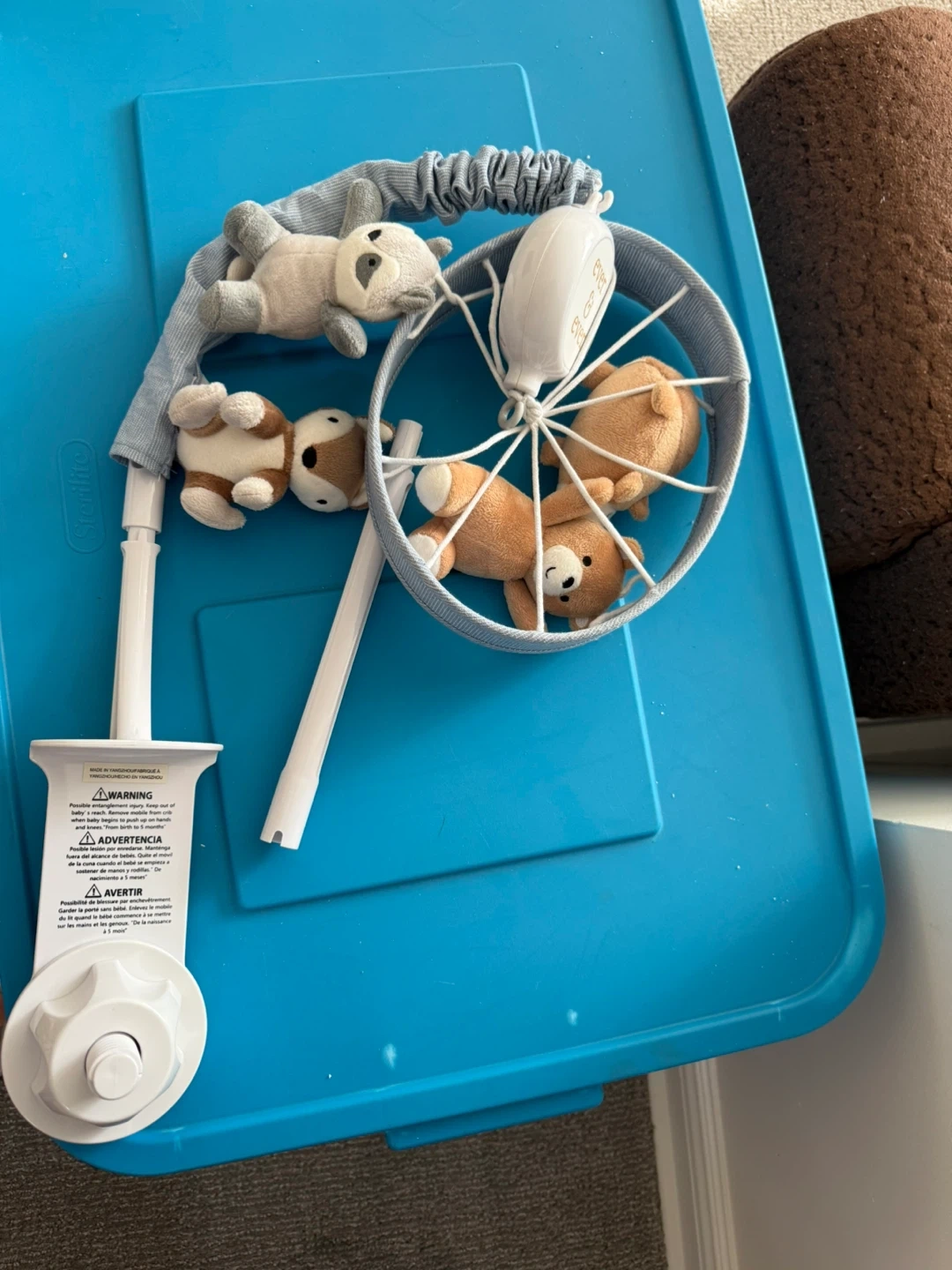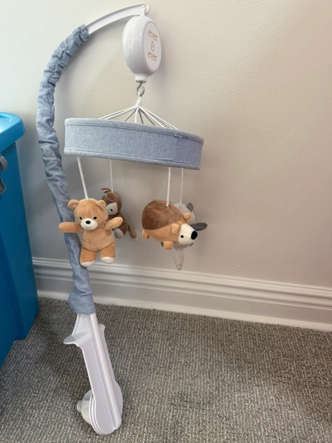 This baby crib mobile is in great condition and ready to soothe your little one to sleep! The mobile features soft plush animals and a gentle rotating motion to keep your baby entertained and relaxed. It easily attaches to most standard cribs