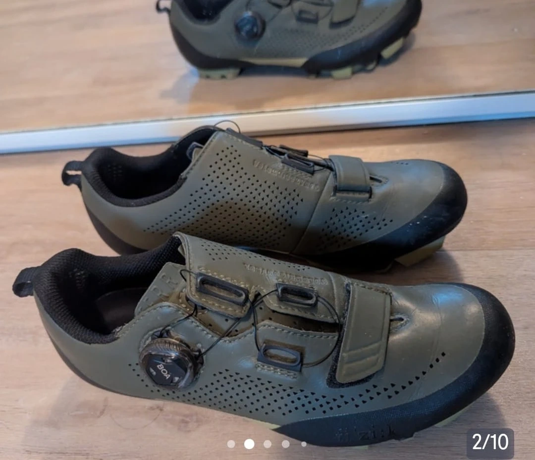 Selling a pair of Fizik Terra Powerstrap X4 cycling shoes in olive green.