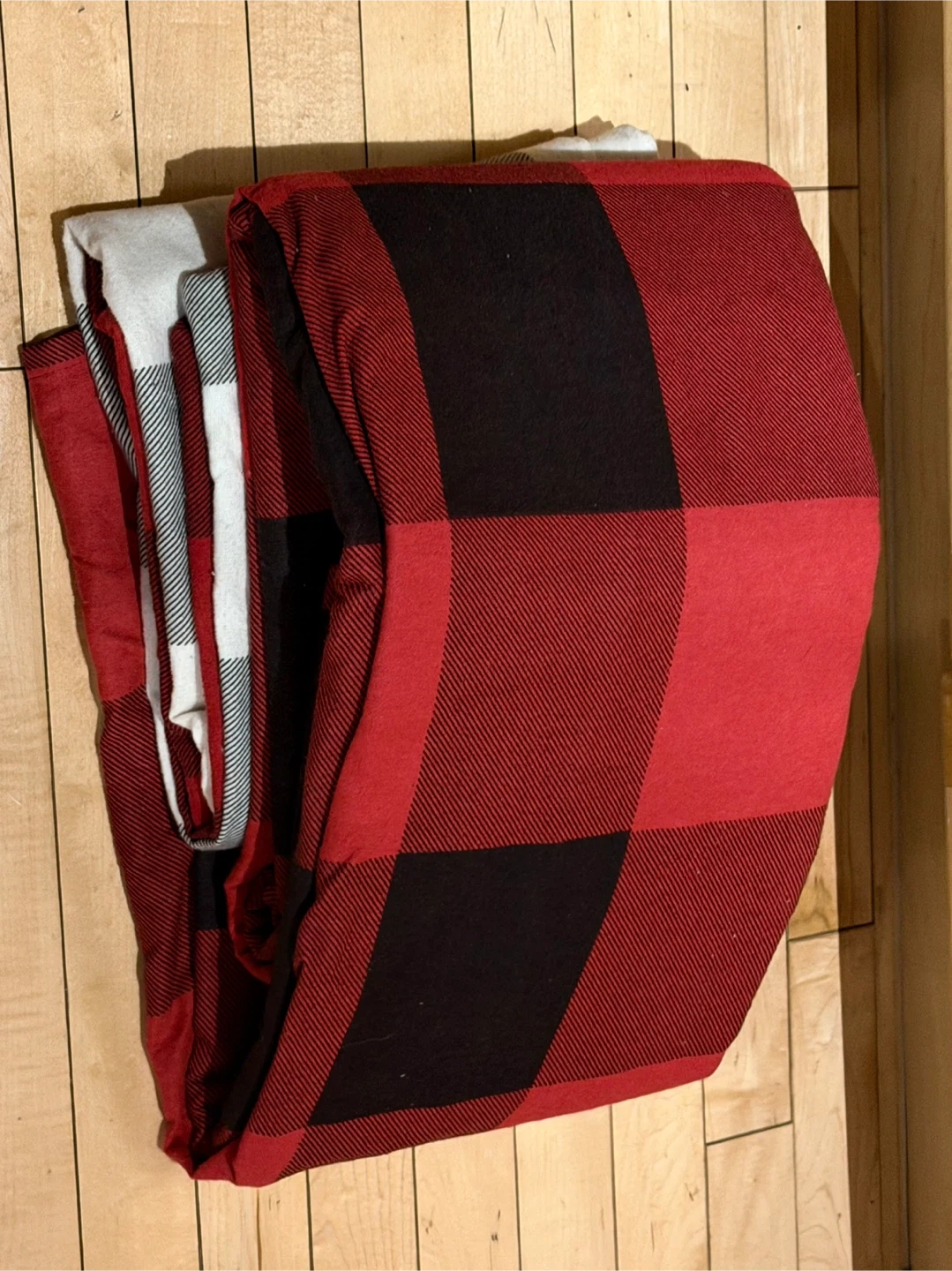 Red & Black Plaid queen top sheet with 2 pillows