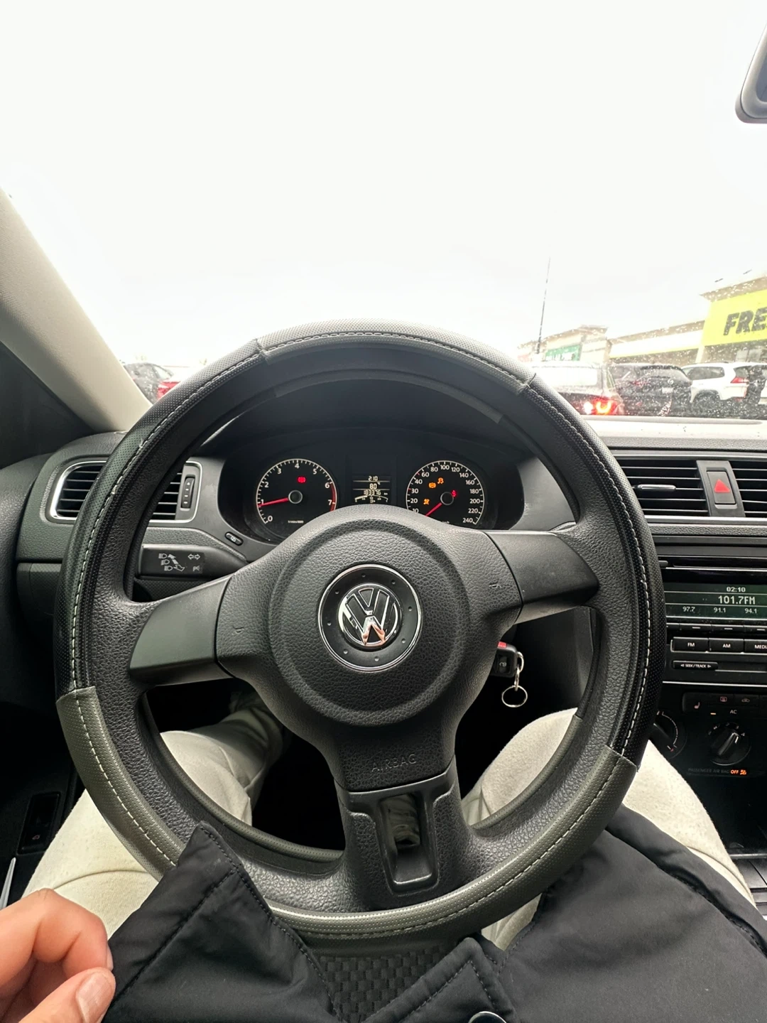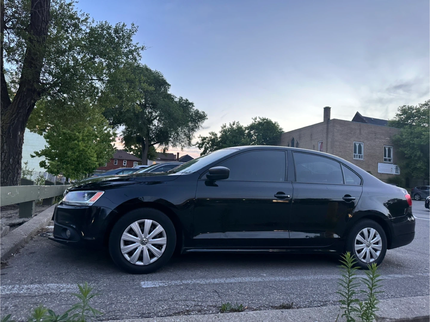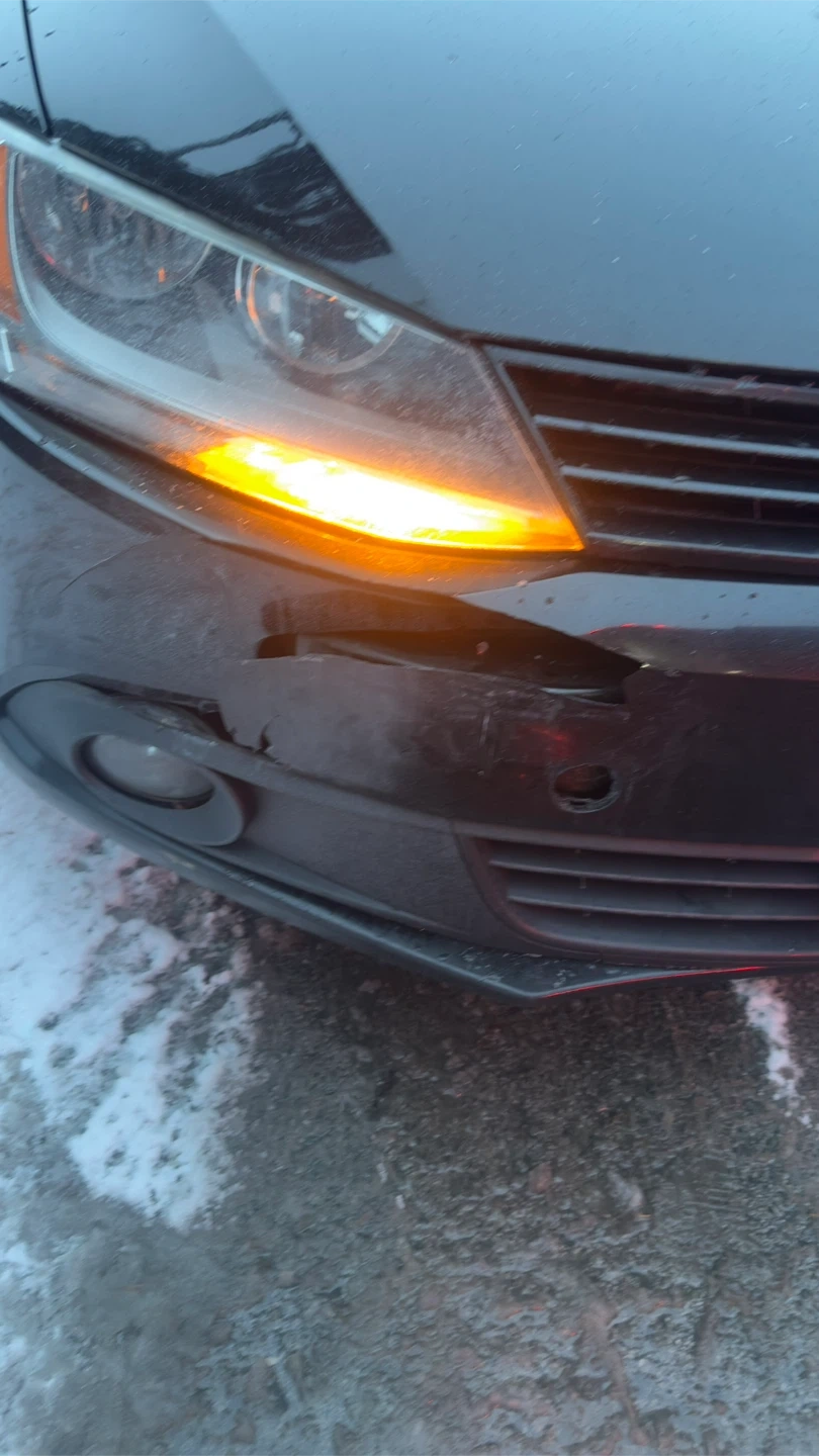 I'm selling my black Volkswagen Jetta. There's some wear on the front bumper, as you can see in the photo. The paint is in good condition for its age and has a few minor imperfections, but nothing serious. It drives very well. 2.0L engine, 5-speed manual transmission, 189,000 km, almost no rust. You can make me an offer.