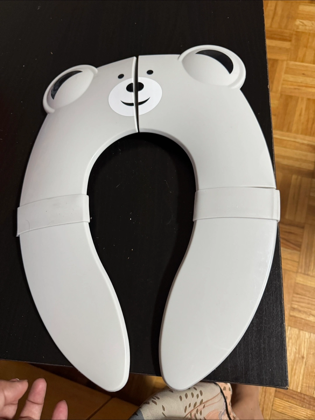 Here's a Skip Hop potty seat in a cute bear design! It's in great condition and ready to help with potty training. The seat is grey and features a friendly bear face, making it more appealing for little ones