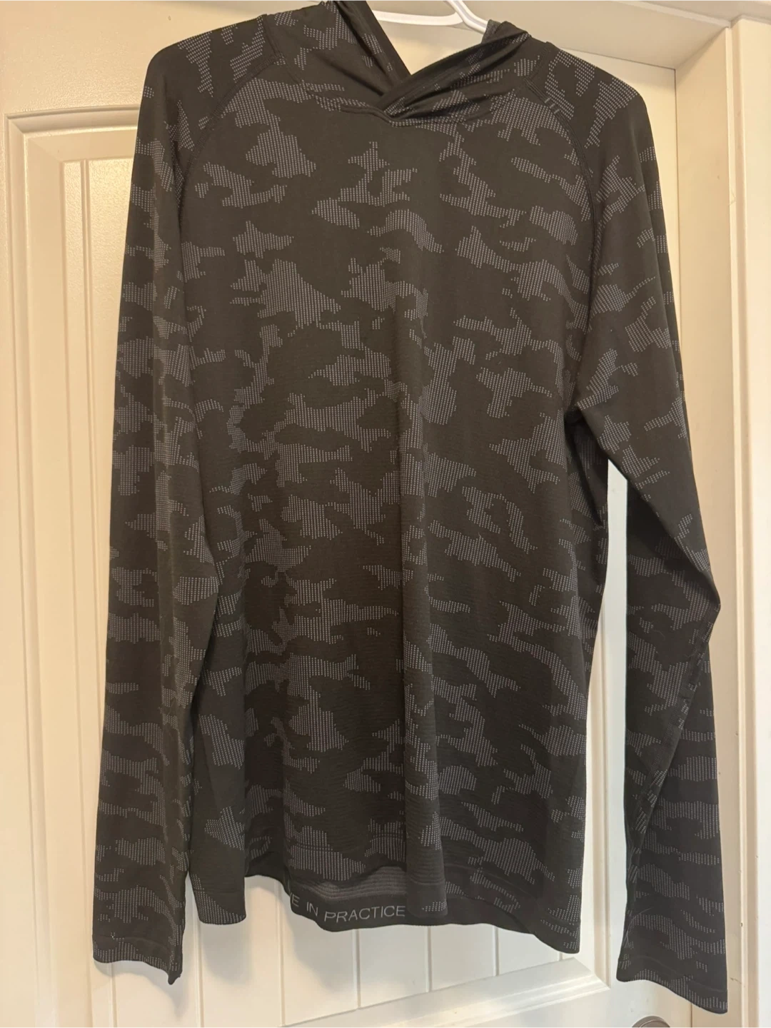 Men’s Lululemon long sleeve shirt with hood in camo print. Size large. Quick dry material. Only worn twice.