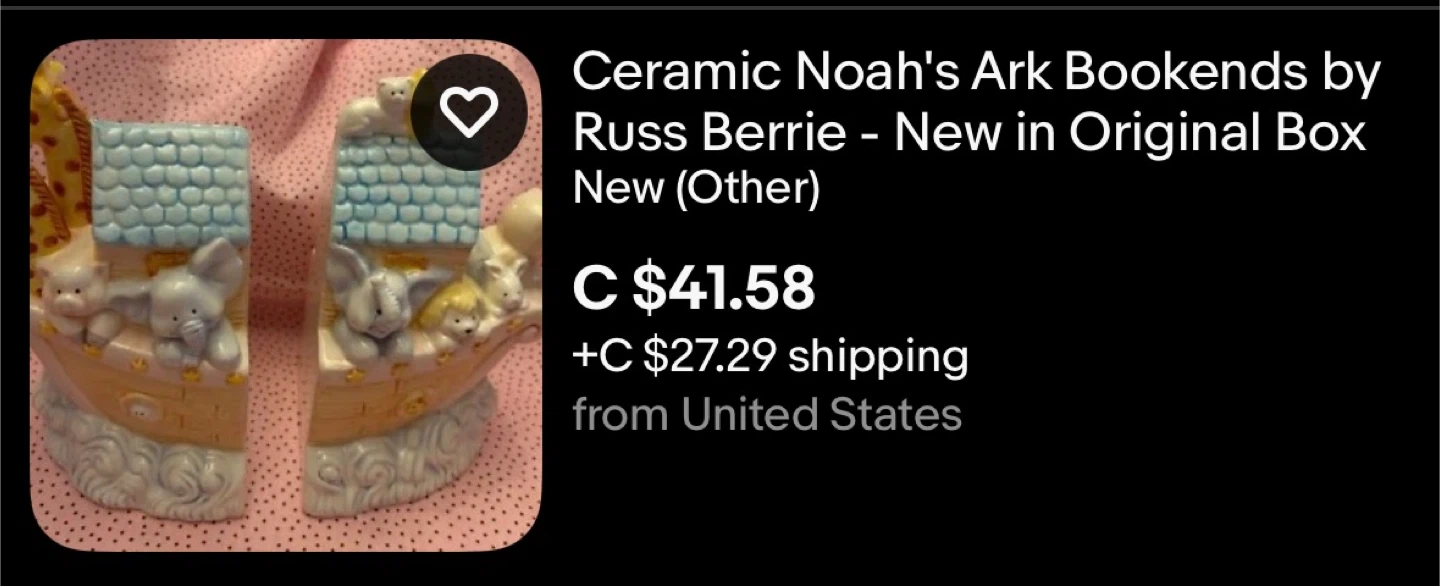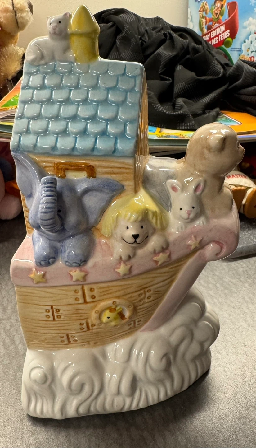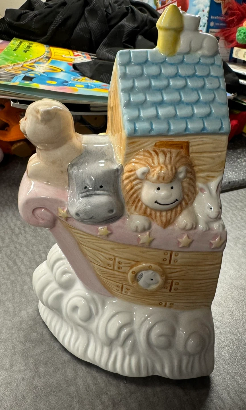 Russ Berrie ceramic Noah's Ark book end. It's a charming piece, perfect for a nursery or child's room. Only 1 half available. Amazing detail.