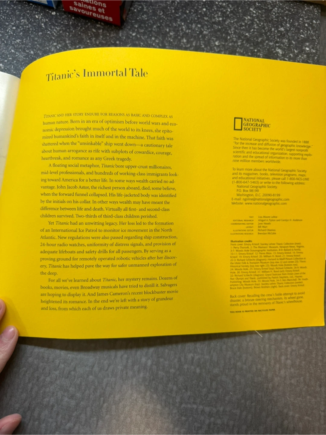 Selling a National Geographic Collector's Edition about the Titanic! It's in great condition and full of fascinating information and photos about the ship and its history