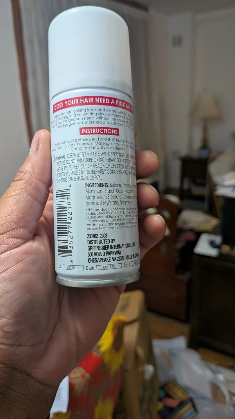 Selling a can of Dry Shampoo, perfect for those in-between washes! It's the Spray, Style & Go! version in Crisp scent. Net weight is 1.6 oz (45 g). The expiration date is 2026 June 20.