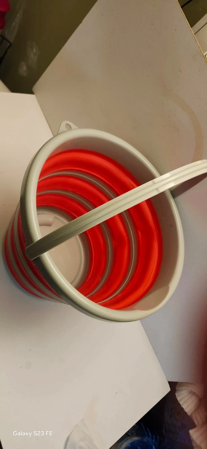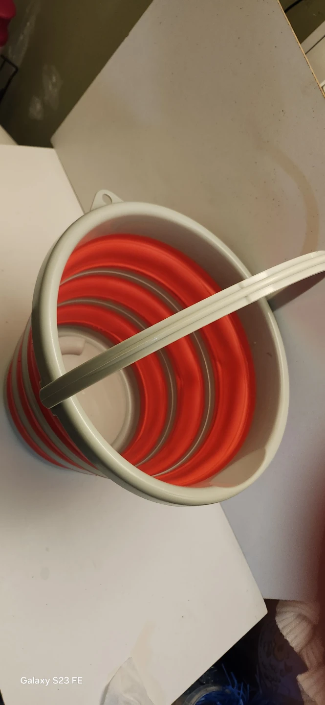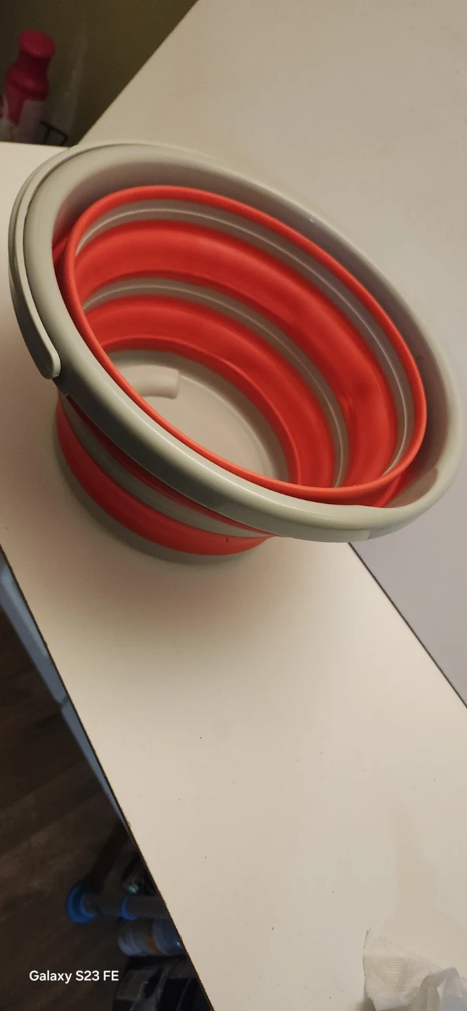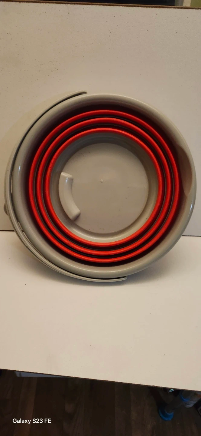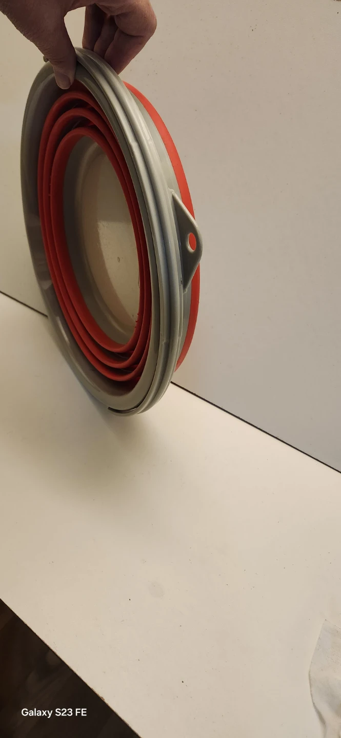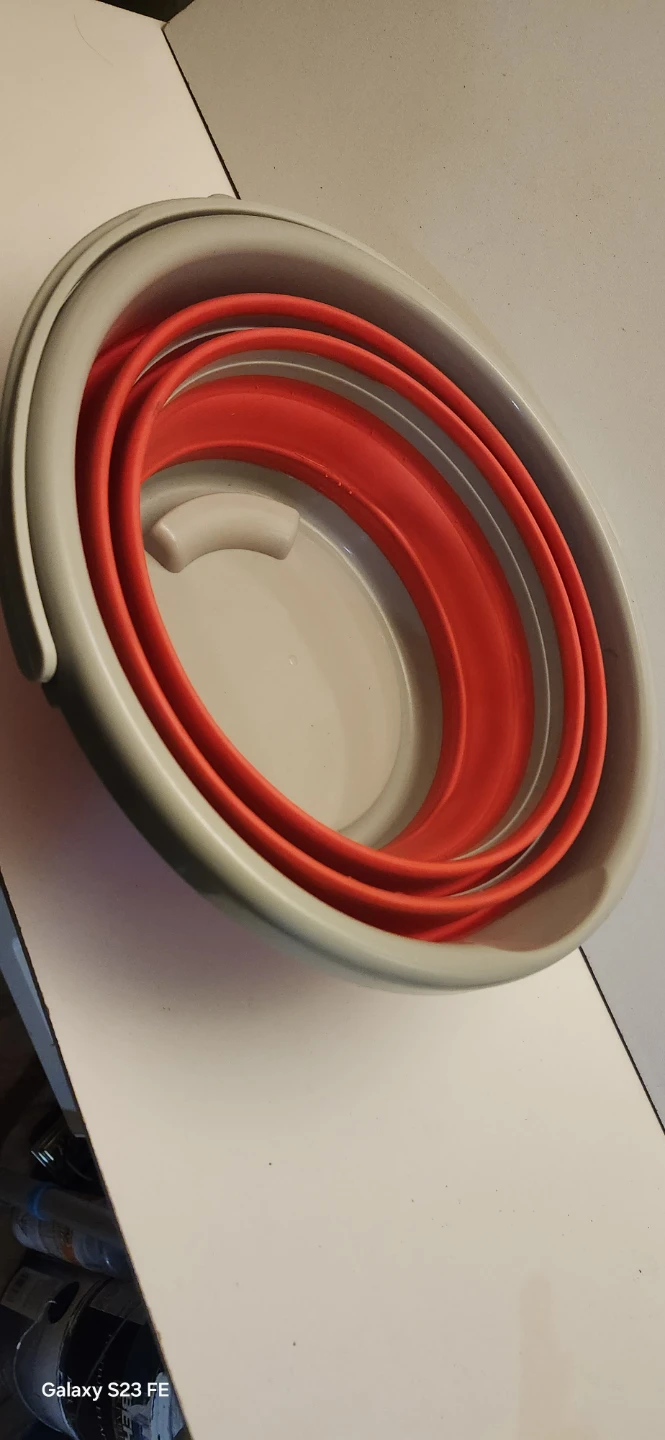 Used excellent working condition This collapsible bucket is perfect for saving space! It's lightweight and easy to store, making it ideal for camping, fishing, or even just around the house. The bucket is in great condition and ready for its next adventure 11" inches Wide and