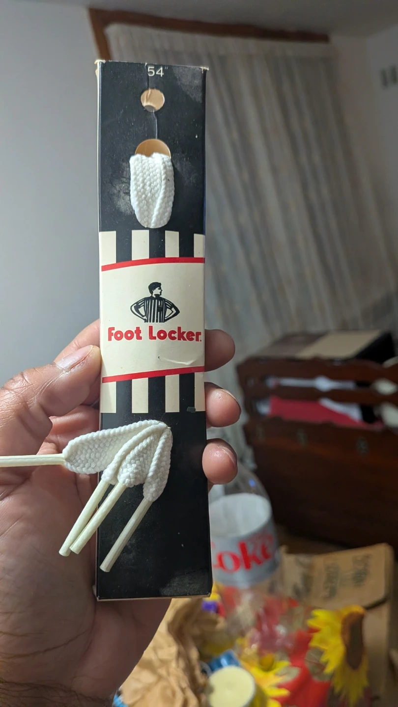Selling a brand new pair of Foot Locker 54-inch white flat shoelaces! They're still in the original packaging. The laces are made of 1 pair of polyester with an acetate tip.