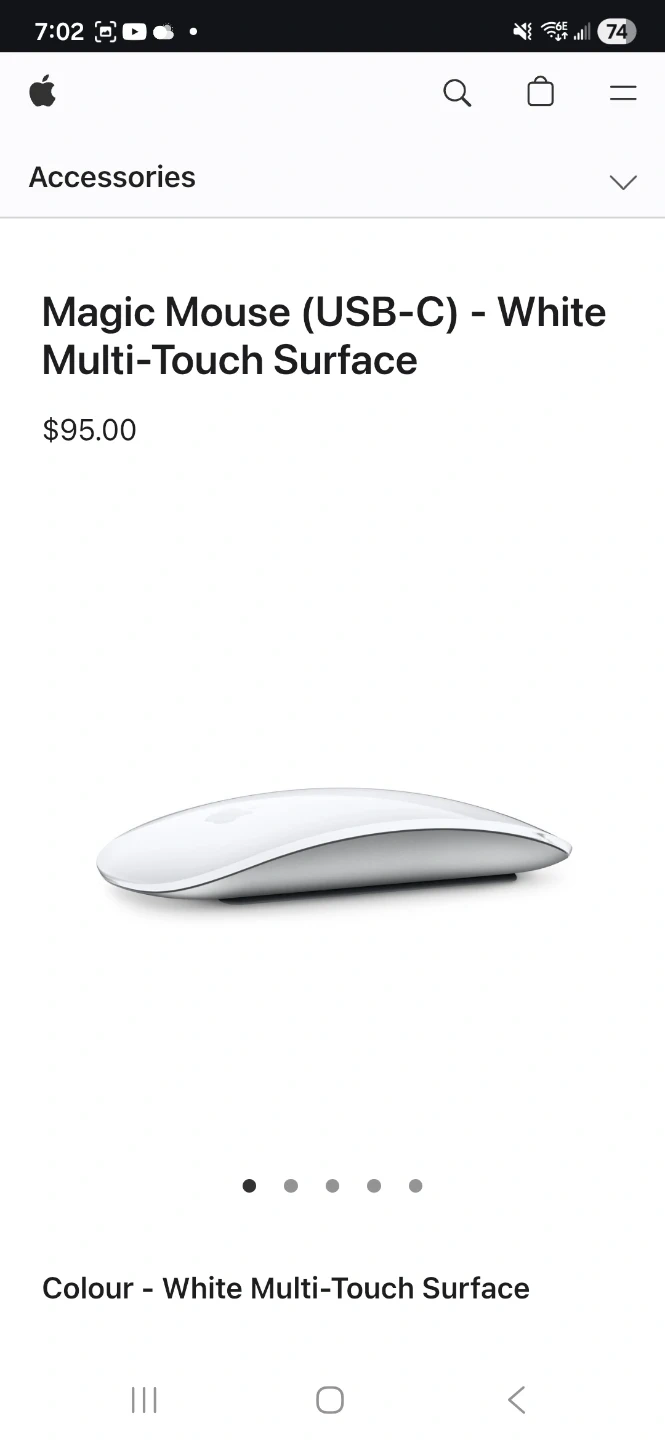 Selling an Apple Magic Mouse (USB-C) in white! It has a multi-touch surface. The box is included. Originally bought for $95