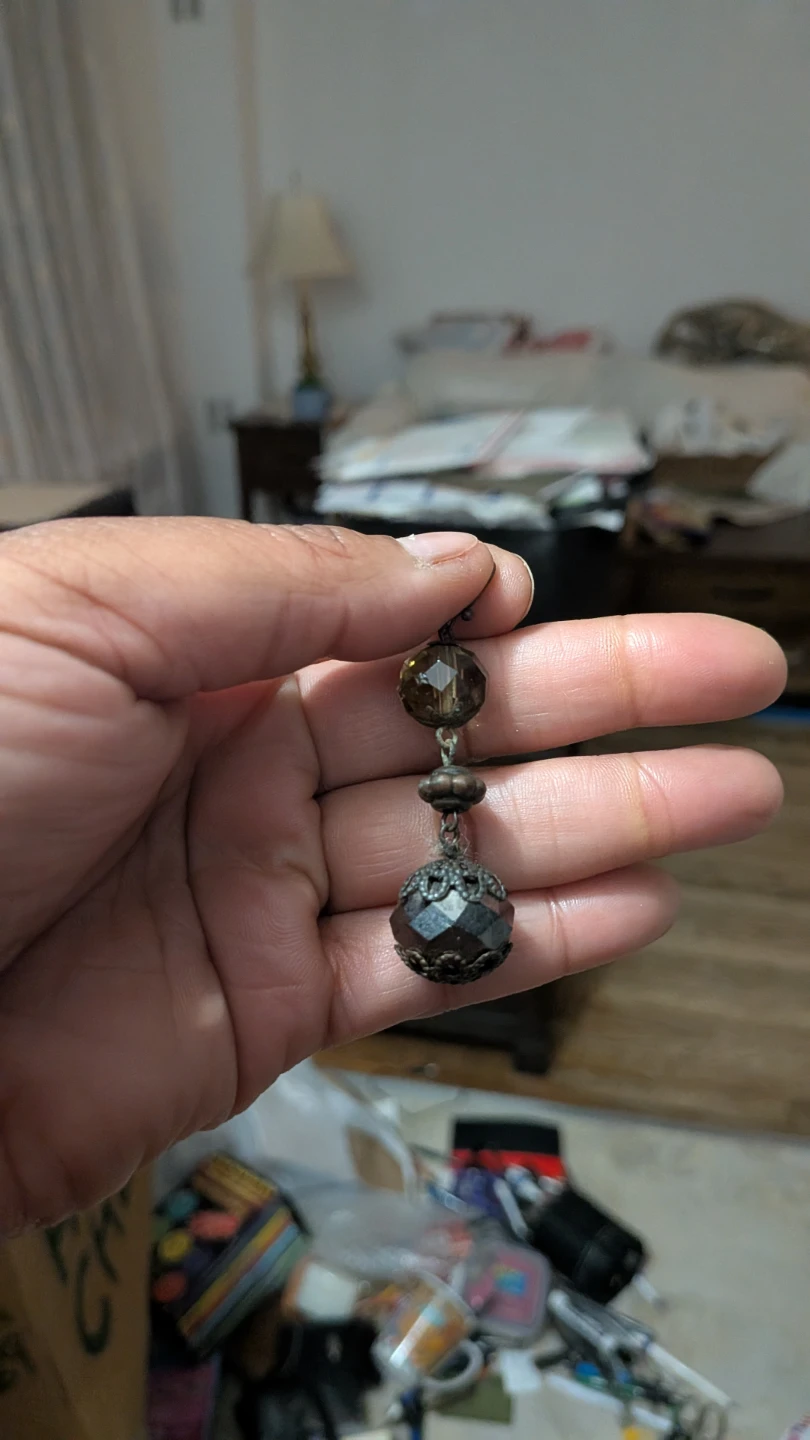 Giving away a brown beaded drop earring. They have a vintage look with faceted beads and decorative metalwork. These would be a great addition to any jewelry collection!