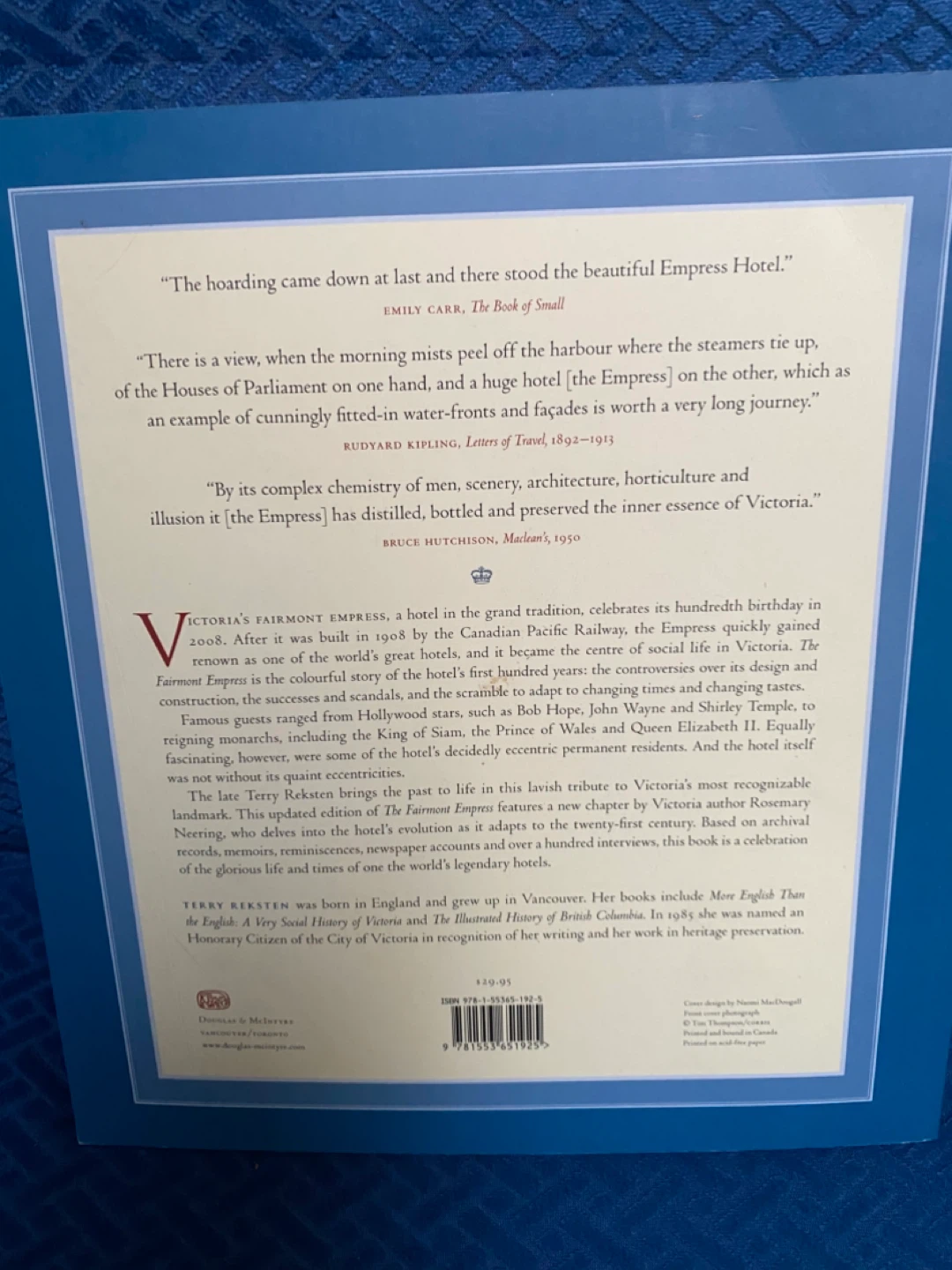 Selling 'The Fairmont Empress: The First Hundred Years' book by Terry Reksten. It's a fascinating look at the history of the iconic hotel in Victoria, BC. Perfect for history buffs or anyone interested in the Fairmont Empress!