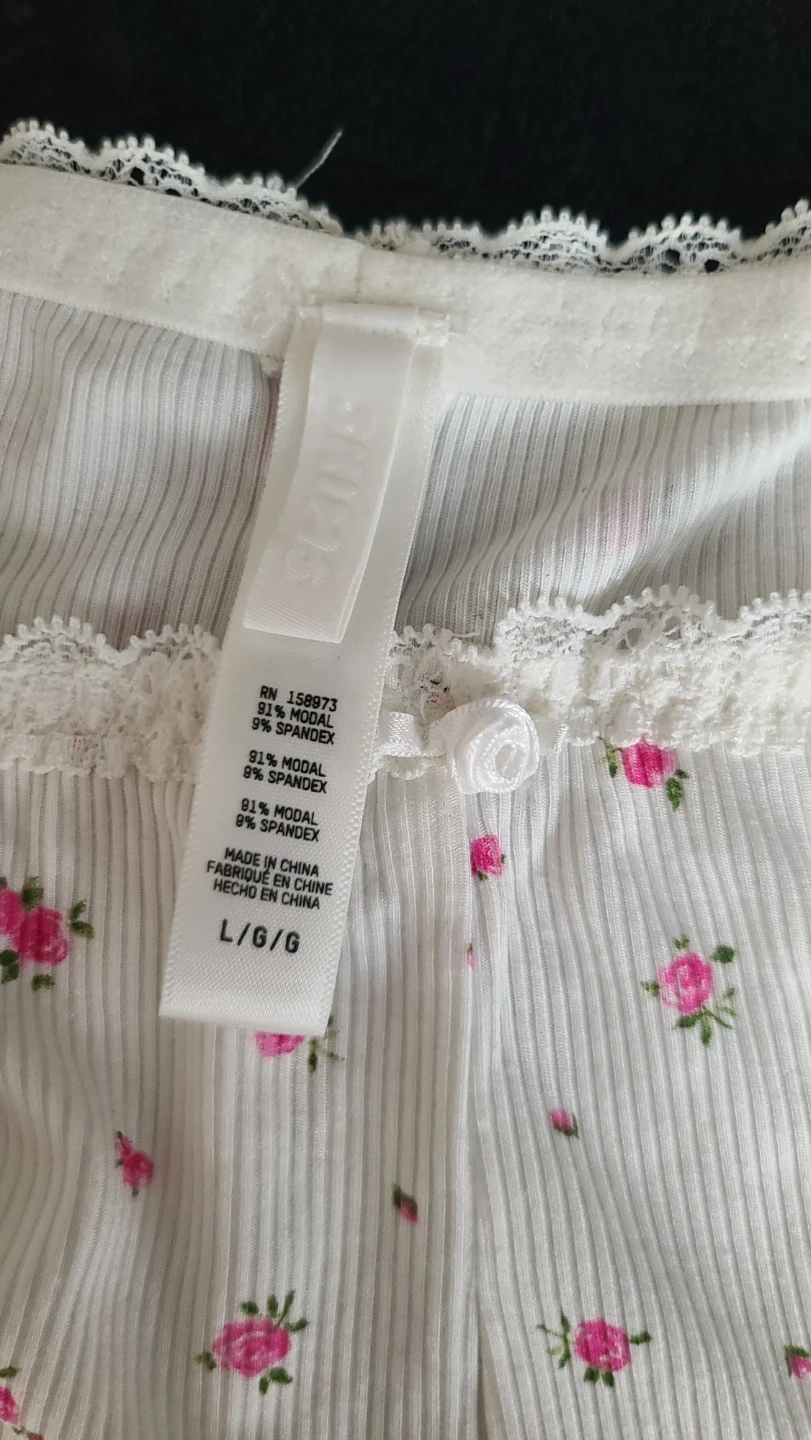 This cute Skims lounge set is perfect for a comfy night's sleep! The material is 91% modal and 9% spandex, making it super soft and stretchy.