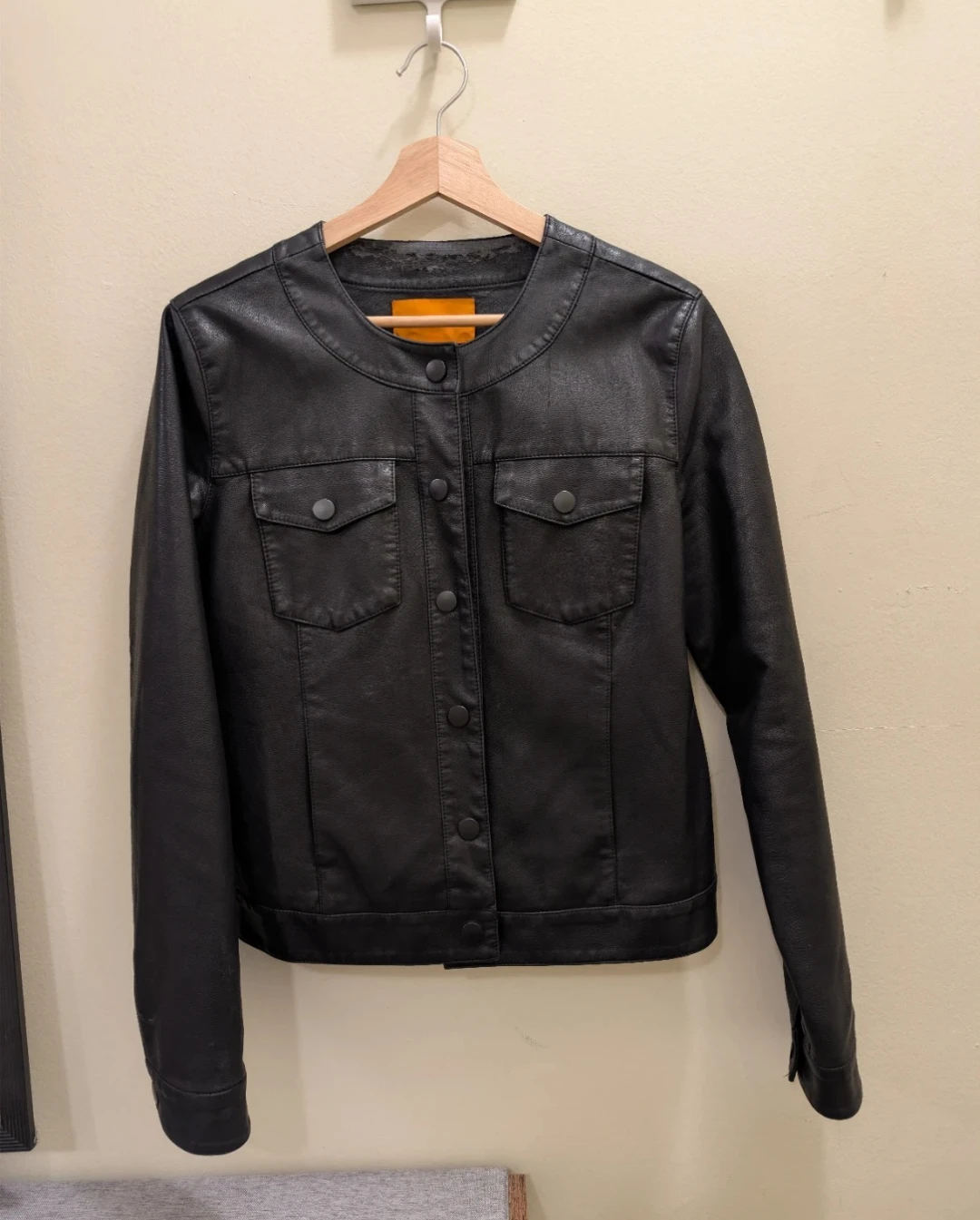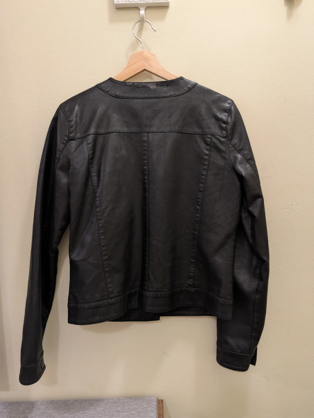 Selling a Joe Fresh black faux leather jacket in size Medium; it also fits a Small nicely.