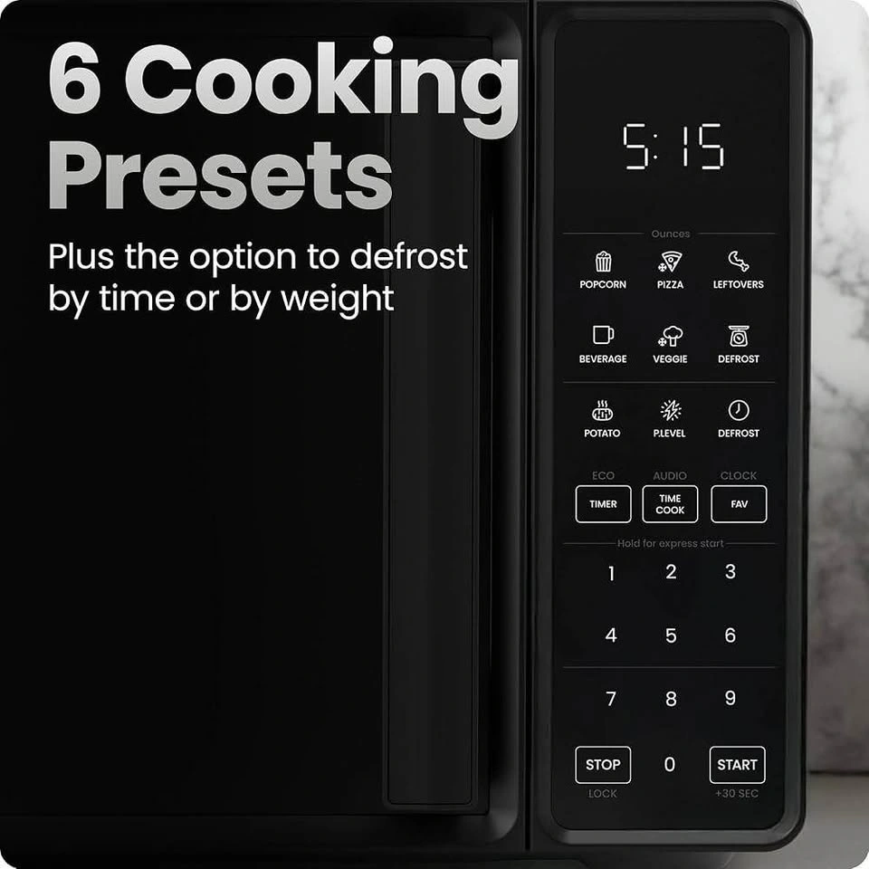 Countertop Microwave Oven 0.7 Cu. Ft., 700 Watts with 10 Power Levels, 6 Cooking Presets with One-Touch Express Cook, Eco Mode, Child Safety Lock, & Mute Button - Black