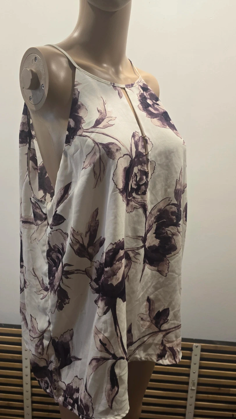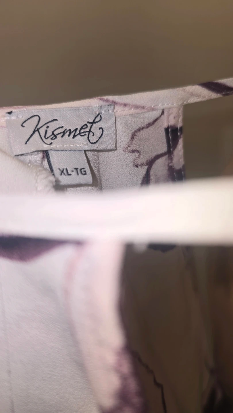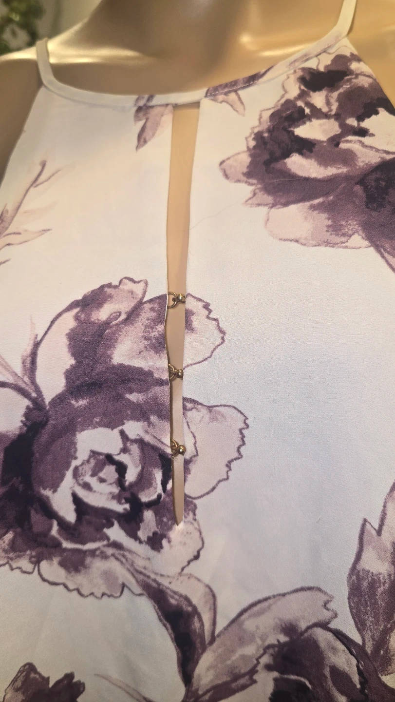 This is a Kismet floral tank top fits medium to large possibly extra large. It features a beautiful floral pattern, perfect for a casual or dressy occasion