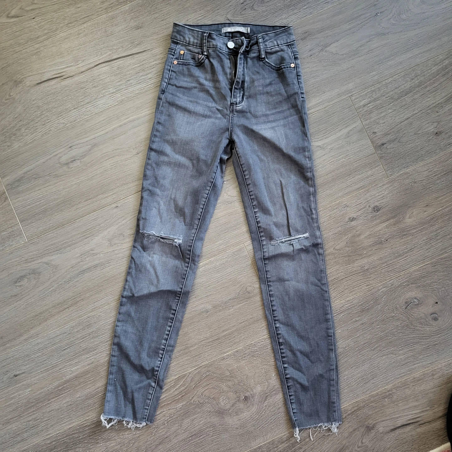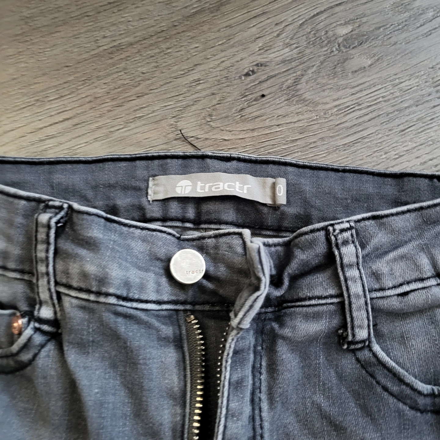 Selling a pair of practically new, worn once, Girls Tractr jeans in a stylish grey wash. These are a size 10 and feature a trendy distressed look with rips at the knees. Perfect for adding a bit of edge to your wardrobe!