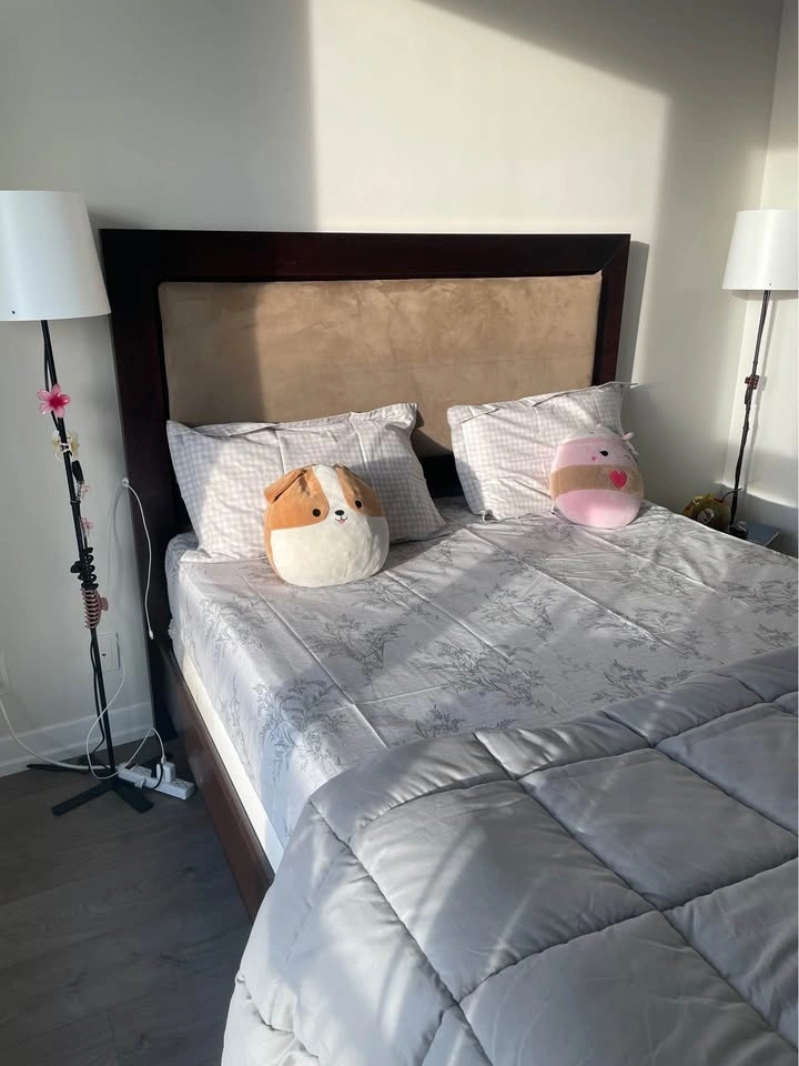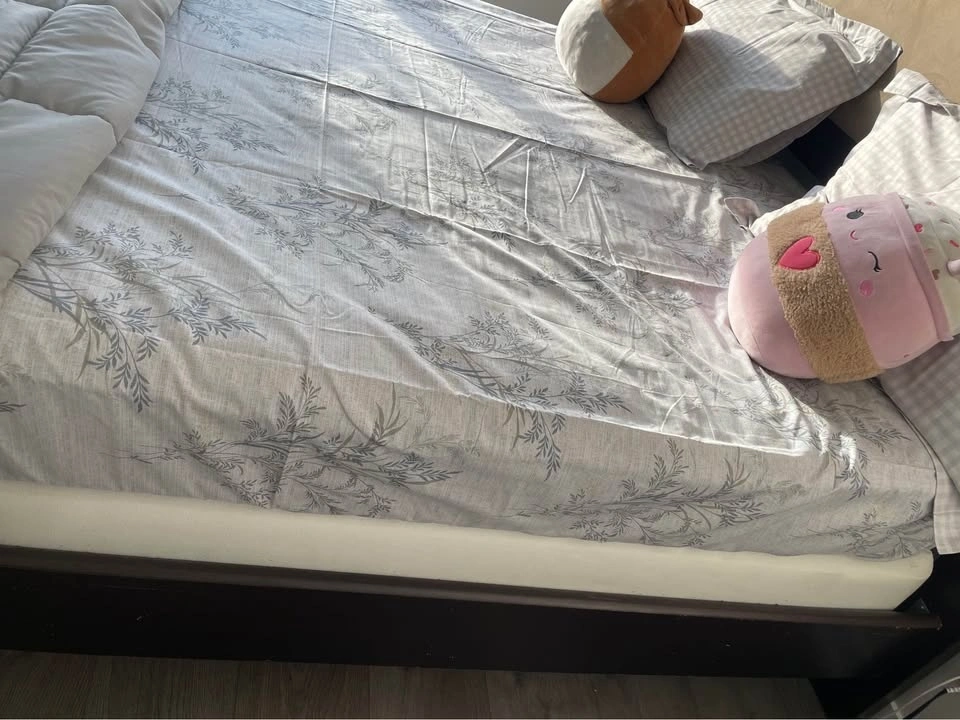Selling a custom-made bed frame crafted from high-quality solid wood, along with an IKEA bed box.