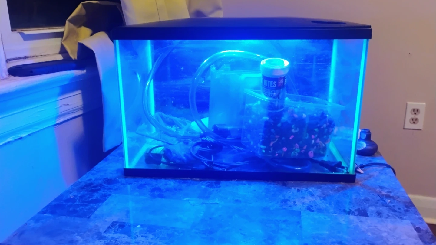Selling a used aquarium that comes with a variety of accessories! It includes a filter, tubing, and some colourful gravel. Also comes with Tetra Tropical Fish Food Bites. Has both black light and regular lights options. No leaks.