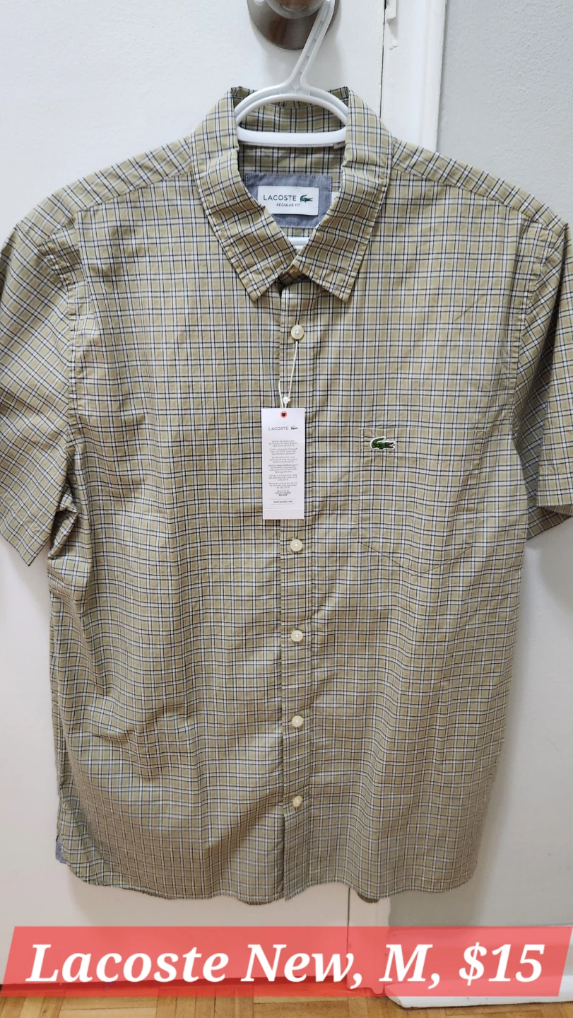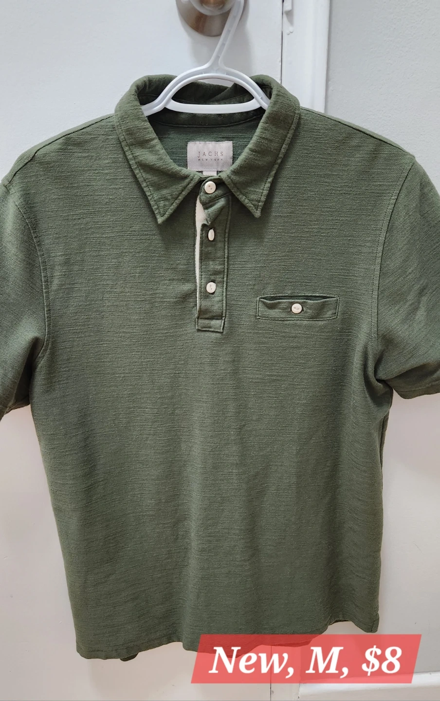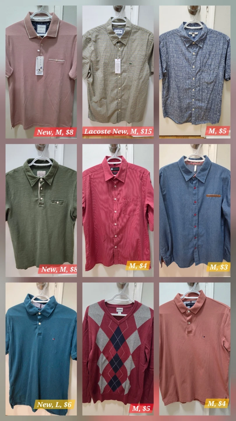 Buy one or more of these men's work clothes (shirt, polo shirt, long sleeves, etc.), some brand new and some are still in great condition. I put in the picture if it's brand new, the size (S, M, or L), and the price. The prices are final, even if you're buying more than one. They're the lowest I will give (save $$), or you can buy elsewhere. Everything's in perfect or great condition. If picture is posted, it's available. Just let me know which one(s) you're buying.