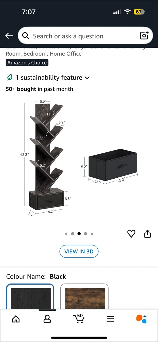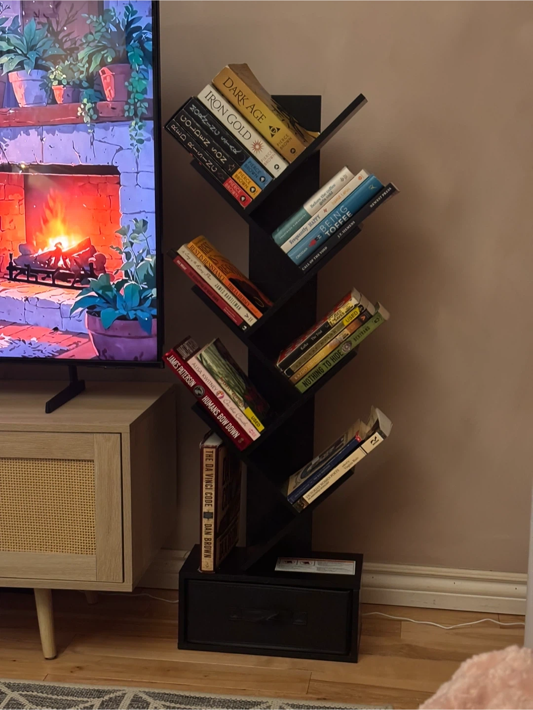 Black Tree Bookshelf with Drawer