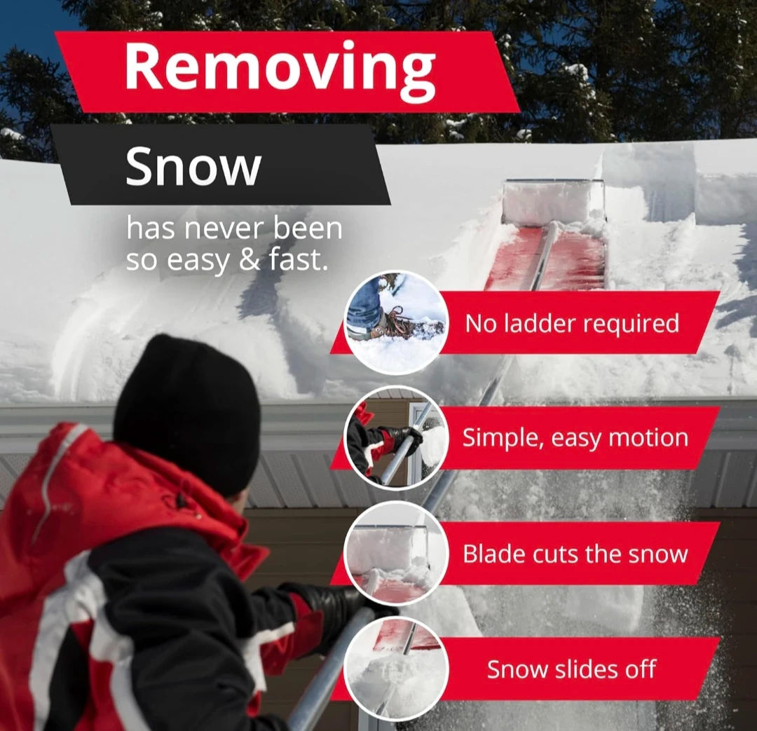 Get ready for winter with this SNOWPEELER Premium Roof Rake! It's designed for easy snow removal from your roof, helping you avoid any ice dams or heavy snow buildup. The drift cutter effortlessly cuts through fresh and hardpacked snow. Removing snow has never been easier! New open box.