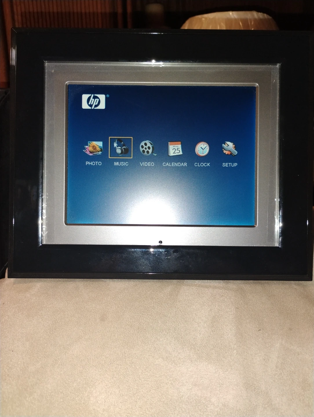 Selling an HP Digital Picture Frame, model df802. It's perfect for displaying your cherished photos and memories. It has USB ports and card slots for easy access to your media. Great for any home or office!