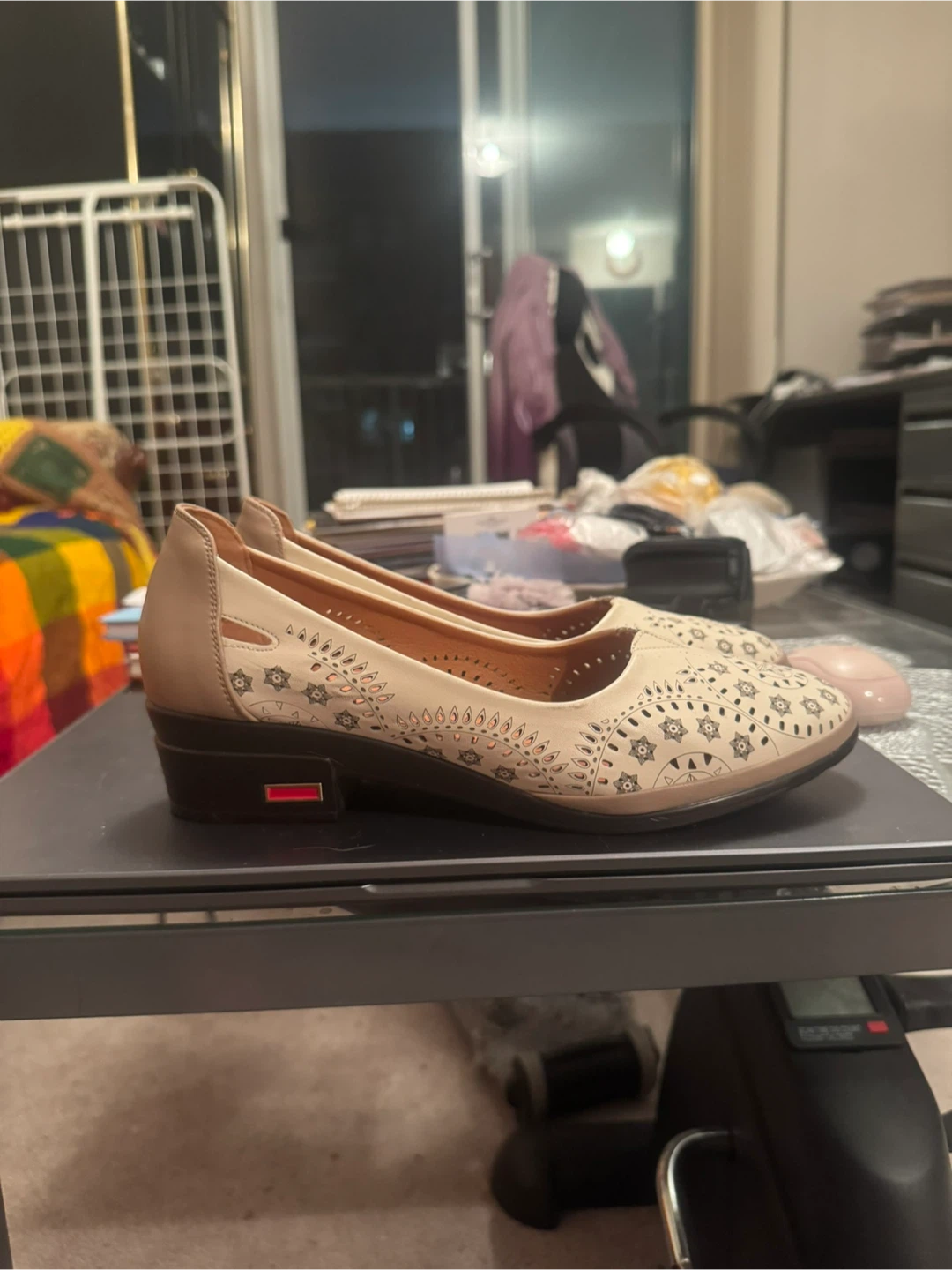 The shoes feature a unique cut-out design. Comfortable for everyday wear!