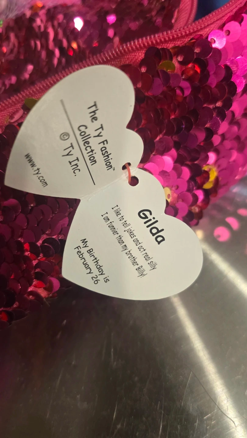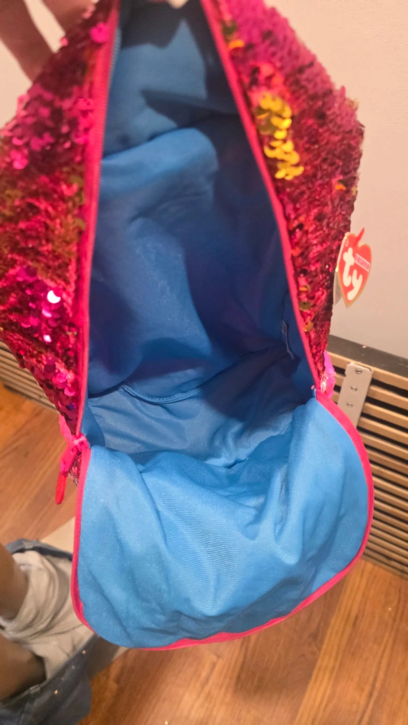 Vintage Gilda Ty sequin backpack is in new condition with tags! It's shaped like a pink flamingo and has adjustable straps. Perfect for a little one to carry their treasures or add to a vintage collection of Ty