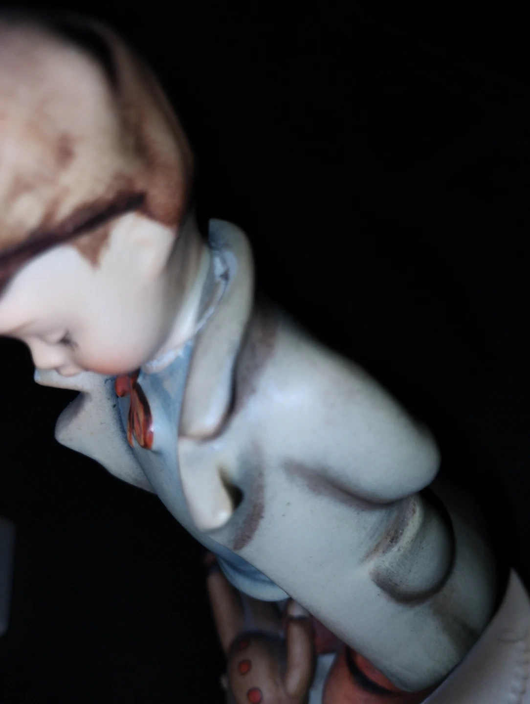 This figure have been damaged at one point and lost its head at one time and attempts to fix it or made