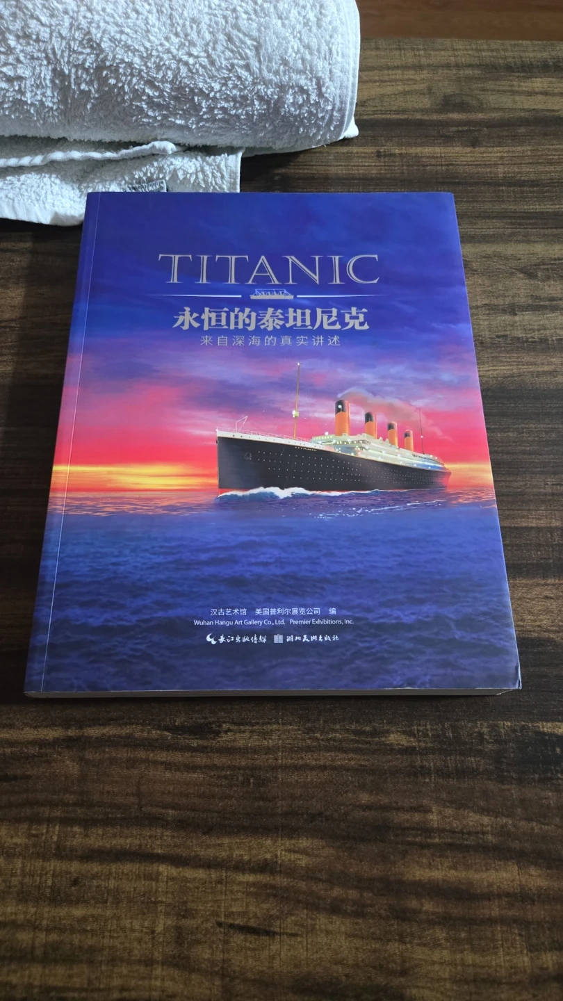 Selling a book titled "Titanic 永恒的泰坦尼克", which translates to "Eternal Titanic". It offers a true account from the deep sea. Published by Wuhan Hangu Art Gallery Co., Ltd. and Premier Exhibitions, Inc.