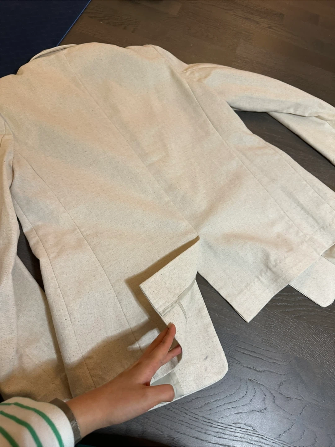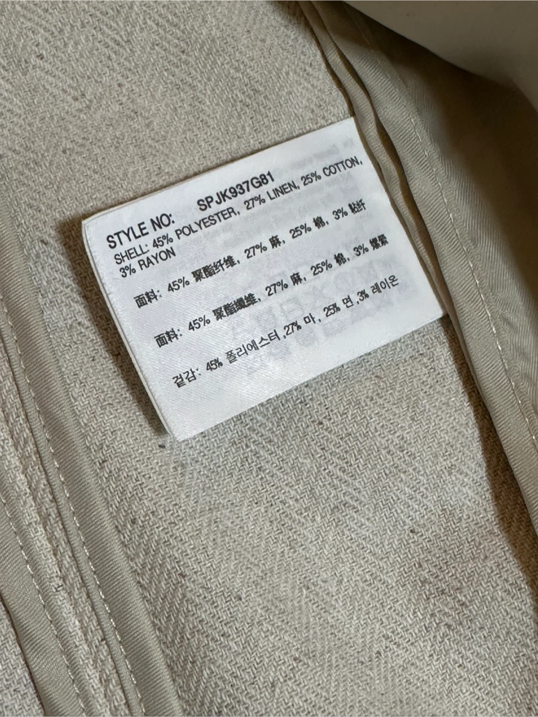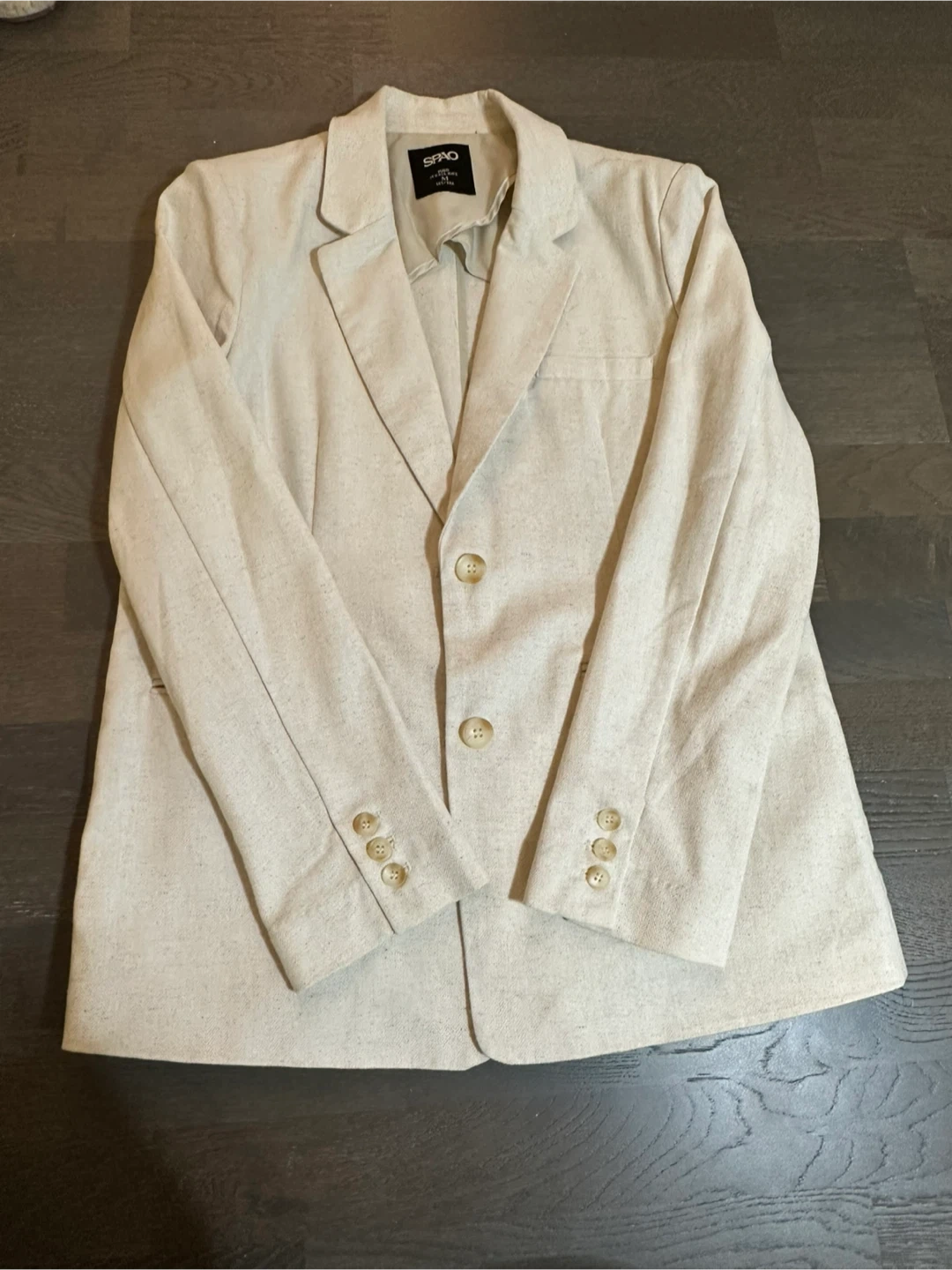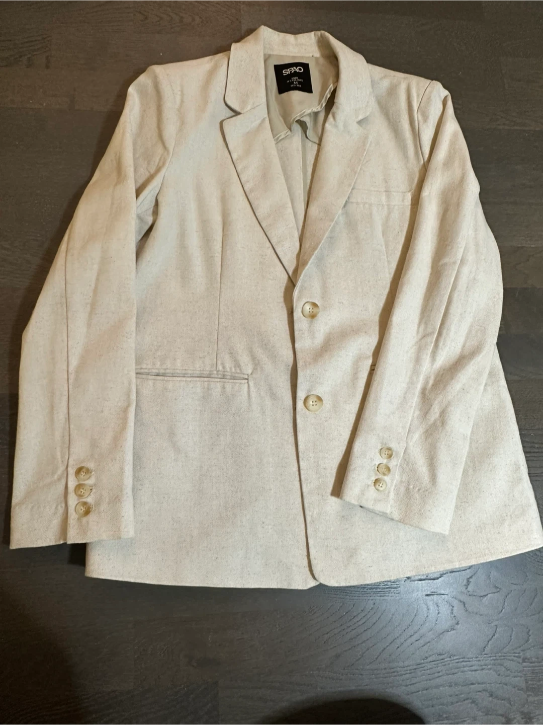 Selling a SPAO summer herringbone jacket in ivory, size M. The shell is made of 45% polyester, 27% linen, 25% cotton, and 3% rayon.