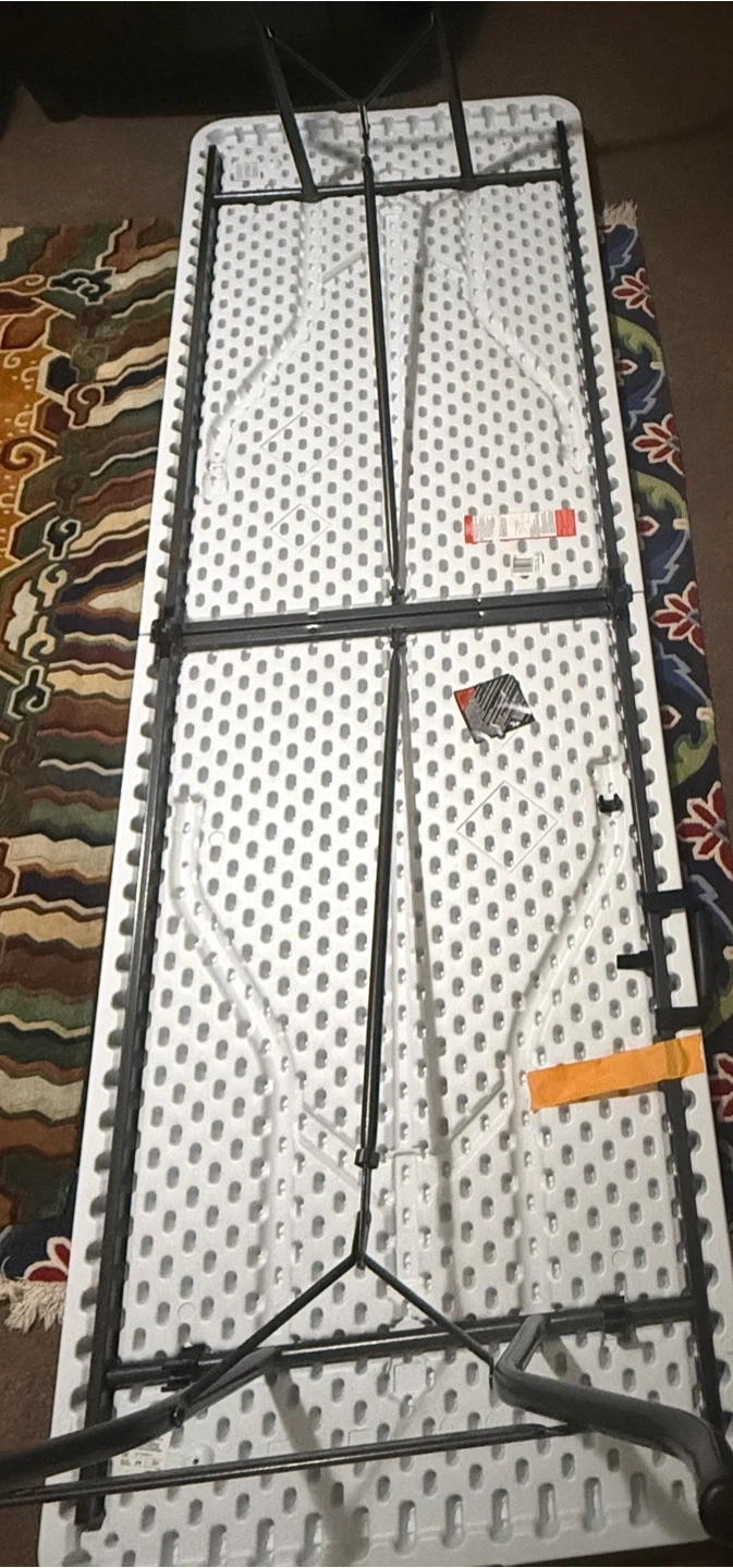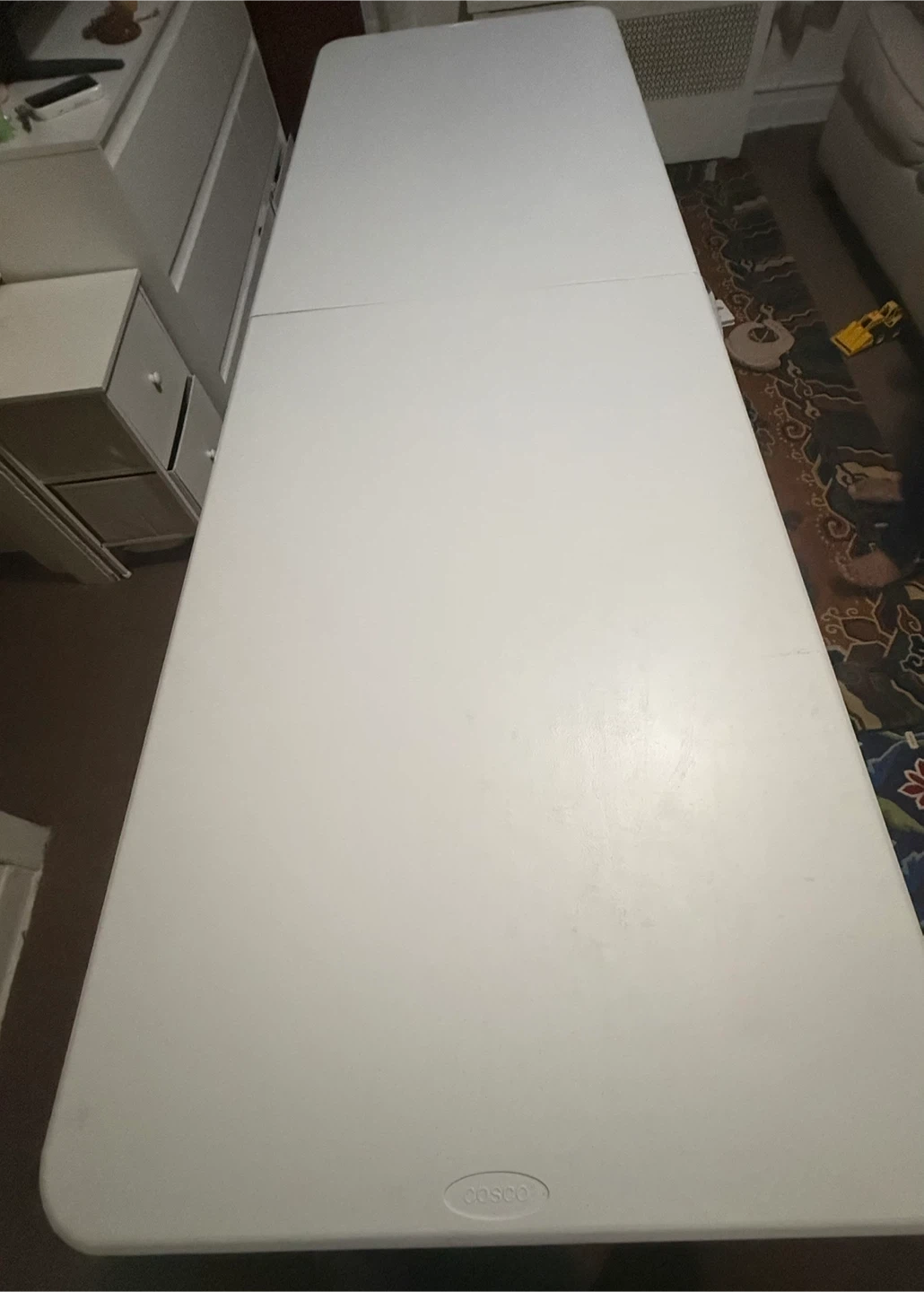 Selling a Cosco 96*30 inch fold-in-half table in white. It's in great condition and perfect for gatherings, parties, or any event where you need extra table space. It's easy to fold and store, making it super convenient!