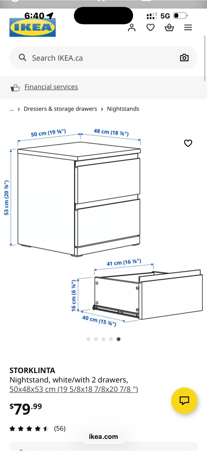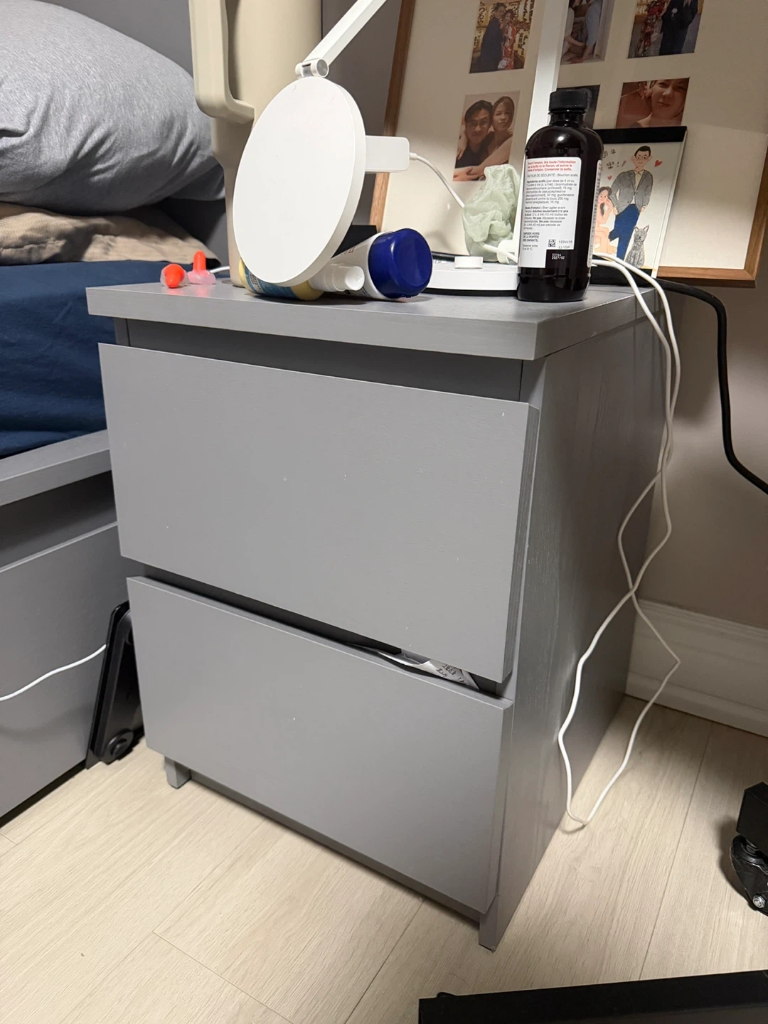 Selling a handy IKEA STORLINTA nightstand in a neutral white/grey colour. It has two drawers for storage. Dimensions are 50x48x53 cm. Originally bought for $79.99