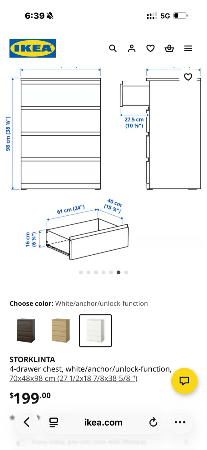 Buy & SellIKEA STORLINTA 4-Drawer Chest - GreyIKEA STORLINTA 4-Drawer Chest - Grey$100Selling a grey IKEA STORLINTA 4-drawer chest! It's in great shape and ready for a new home. The dimensions are 70x48x98 cm (27 1/2x18 7/8x38 5/8 ").ConditionLike newWHERE TO MEETCheck LocationView MapSELLERverifiedMikeHMarkham Village813 reviews0 chats·1 favorites·39 viewsSEND CHAT TO SELLERHi MikeH! I’m interested in your listing.Hi MikeH! I’m interested in your listing.Get the Karrot app to chatSign In to chat