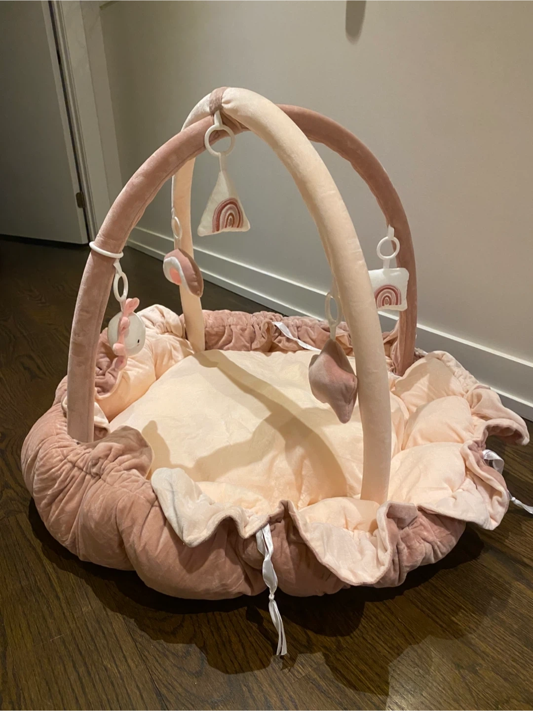 Selling a very gently used baby activity gym in a lovely circular pink colour! It's in great condition and perfect for tummy time and playtime. The gym includes soft toys to encourage reaching and grasping, helping with your baby's development.