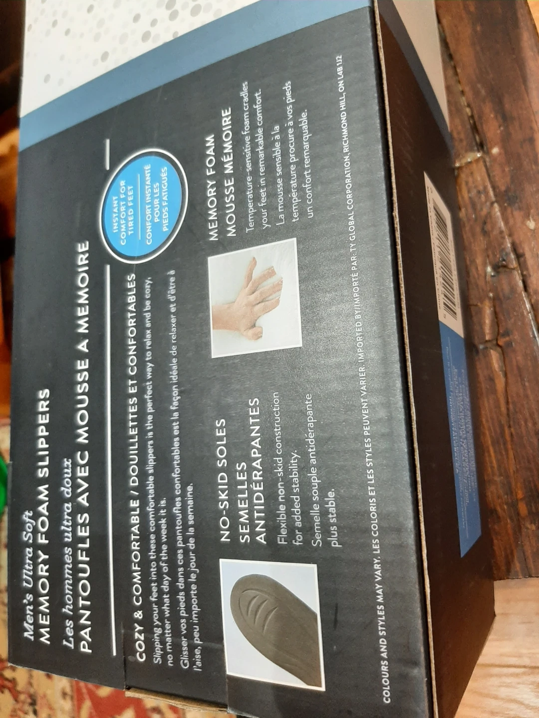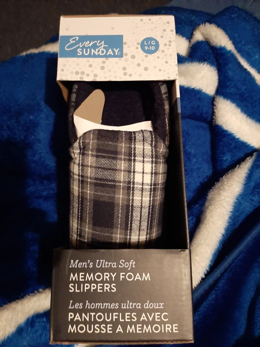 Keep your feet cozy with these Every Sunday men's ultra-soft memory foam slippers! They're size L/G, which fits sizes 9-10. These slippers have a non-skid sole for added stability. They're perfect for relaxing at home